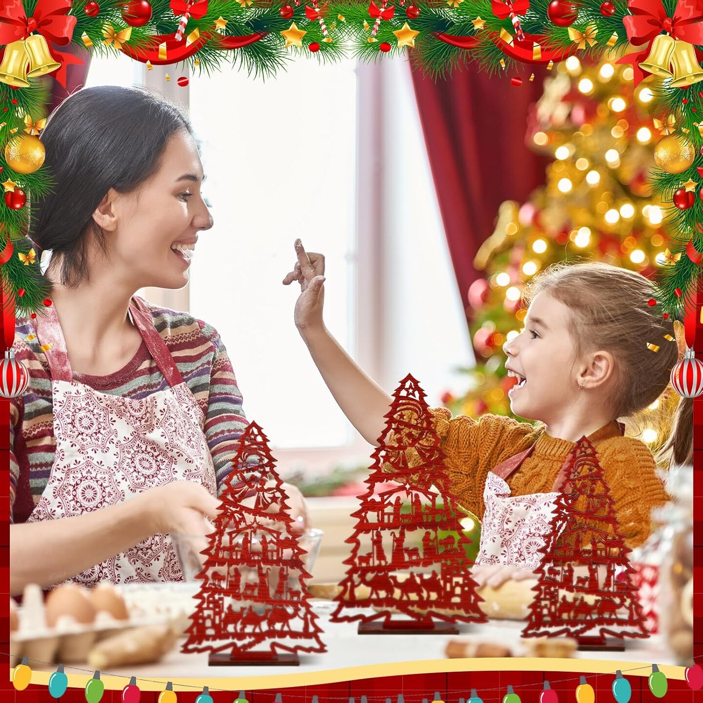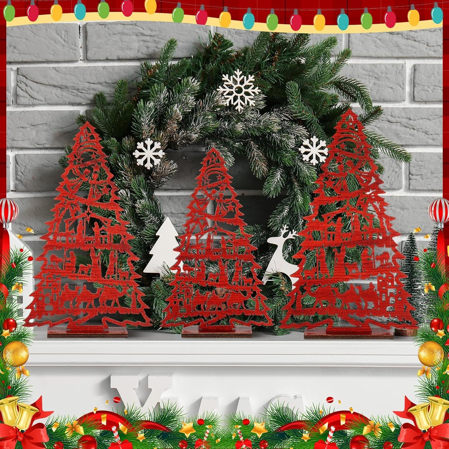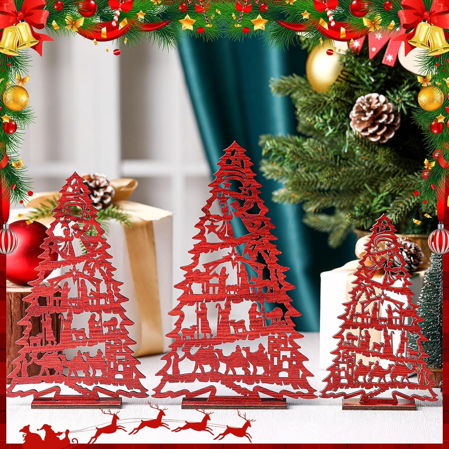 3 Pcs Christmas Nativity Scene Tabletop Decor Wooden Christmas Tree Table Centerpieces Jesus Nativity Wooden Christmas Tree Vintage Wood Tree Sign for Xmas Tiered Tray Decor Home Decorations