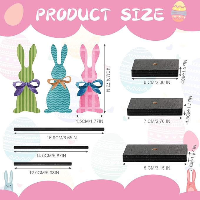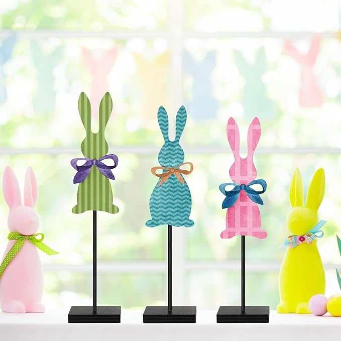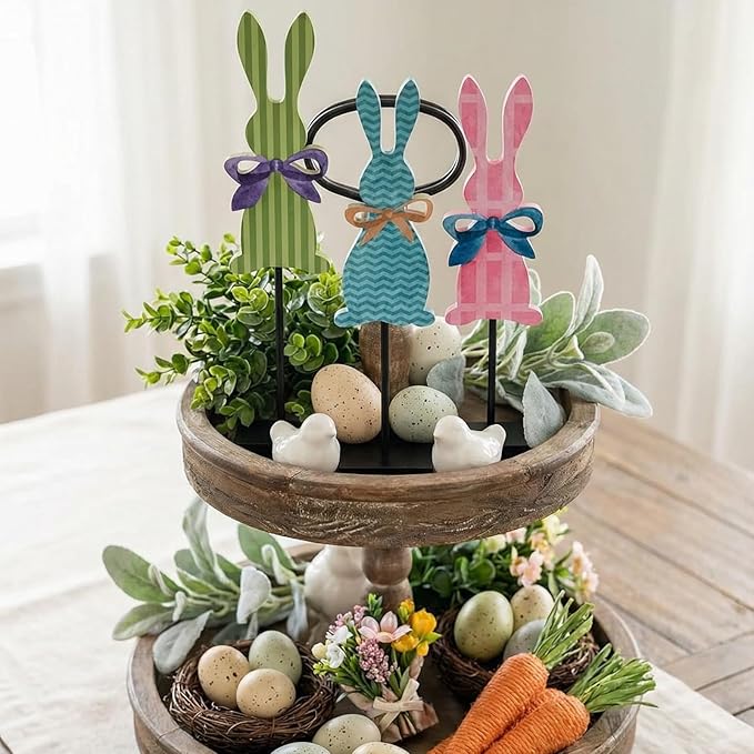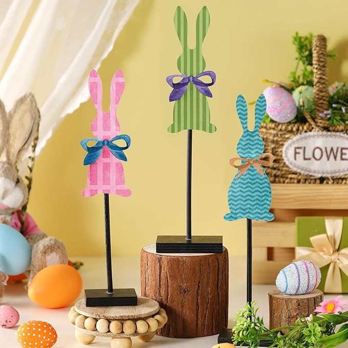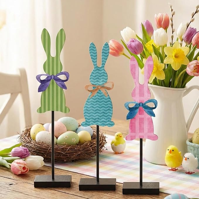 3 Pcs Easter Bunny Table Decorations Wooden Bunny Tabletop Decor Rustic Rabbit Block Sign Farmhouse Spring Centerpiece Easter Decor for Home Mantel Office Desk