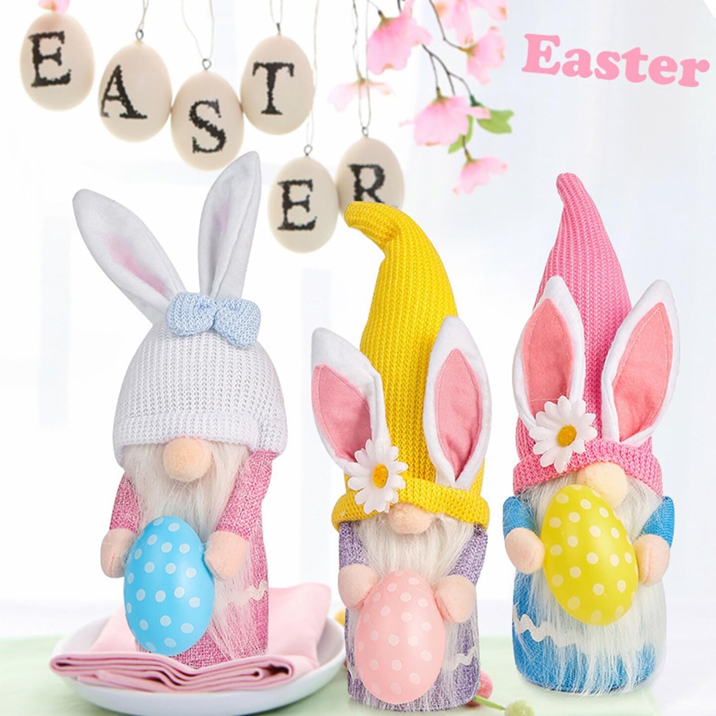 3 Pcs Easter Gnome Bunny, Easter Gnomes Plush, Easter Gnomes Decorations for Home, Spring Easter Gnomes Plush Doll Easter Bunny Gnomes Decor, Easter Bunny Gnomes Plush