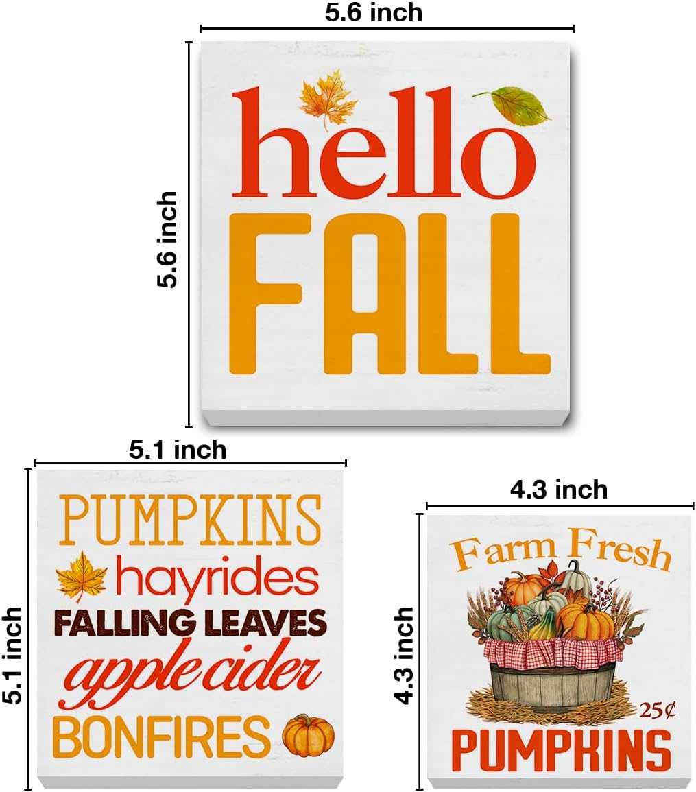 3 Pcs Fall Wood Signs Decor Autumn Wood Block Signs