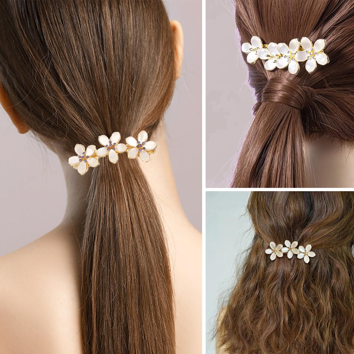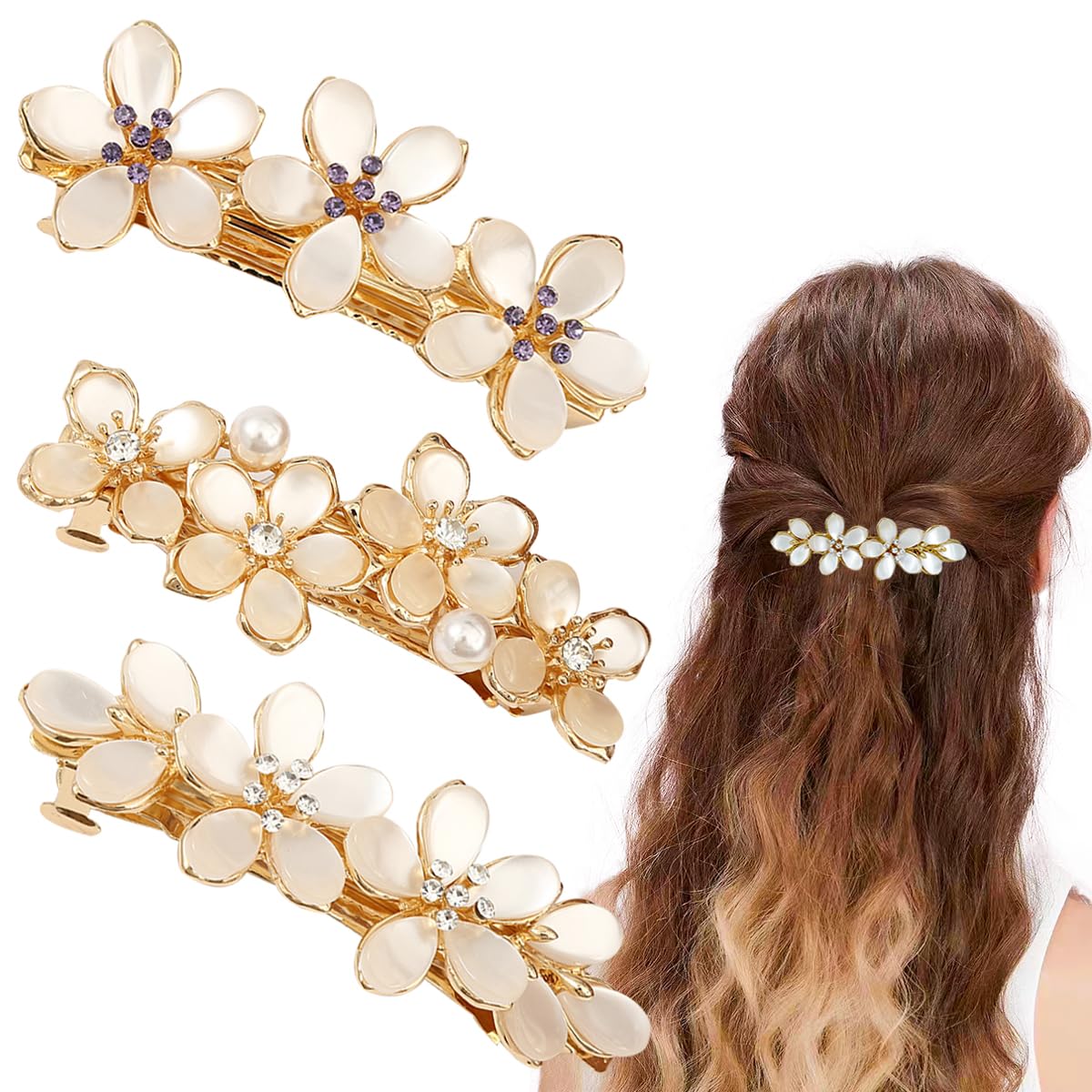 3 PCS Flower Hair Clips Crystal Flower Hairpin