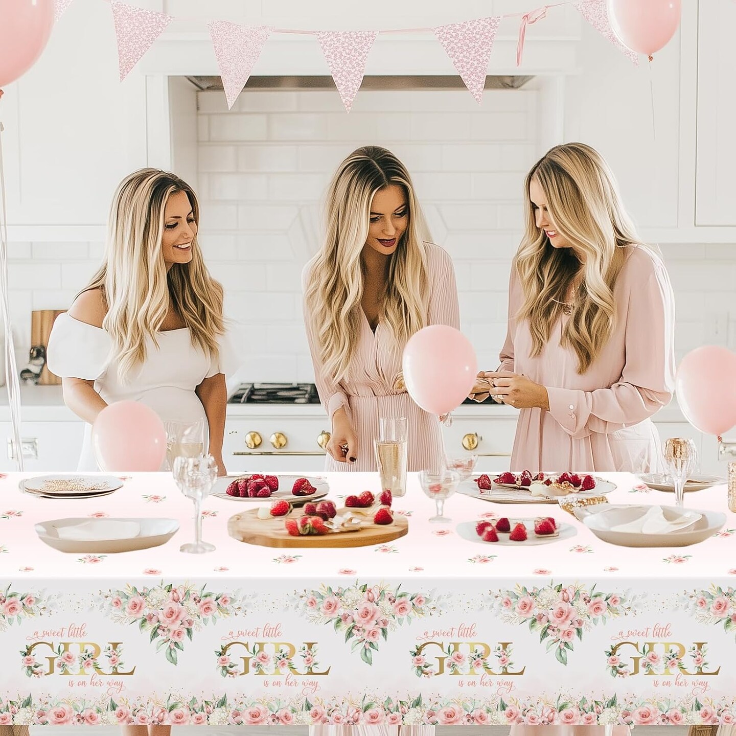 3 pcs Girl Baby Shower Pink Floral Tablecloth
