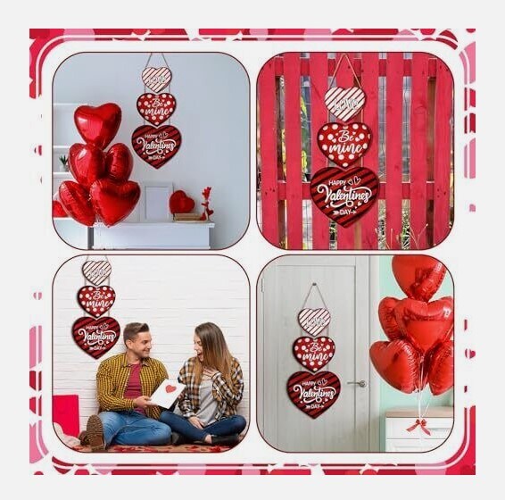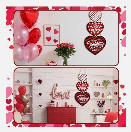 3 Pcs Hanging Valentine's Day Wooden Door Heart Porch Sign Decor