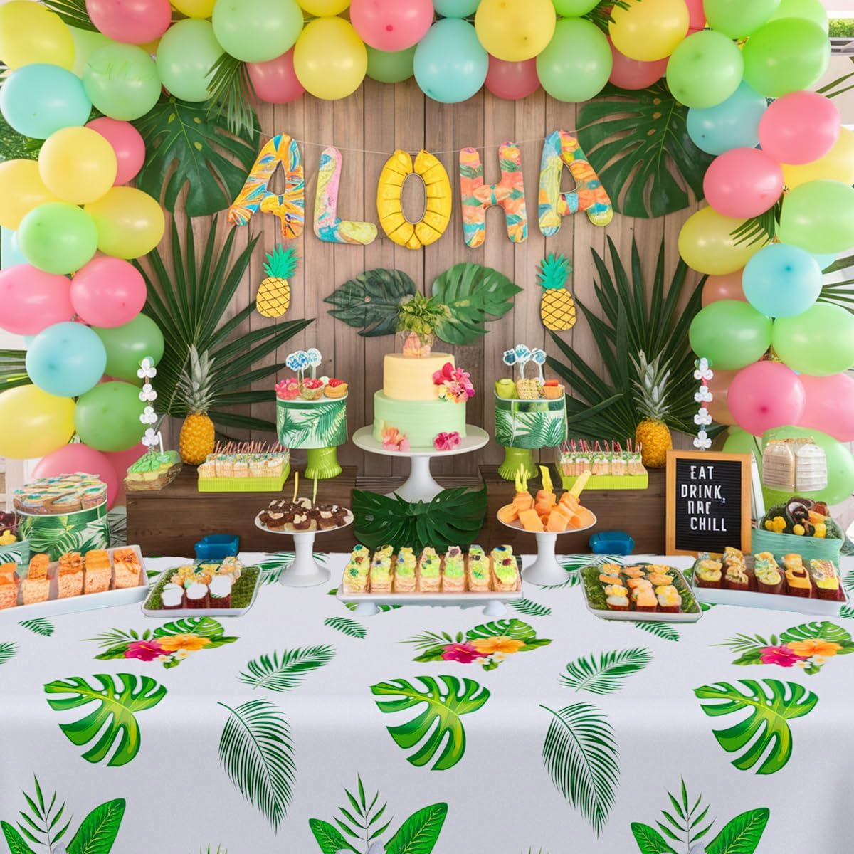 3 PCS Hawaiian Luau Tablecloths Plastic Rectangle Disposable Tropical Palm Leaves Table Cloths 54"x108"