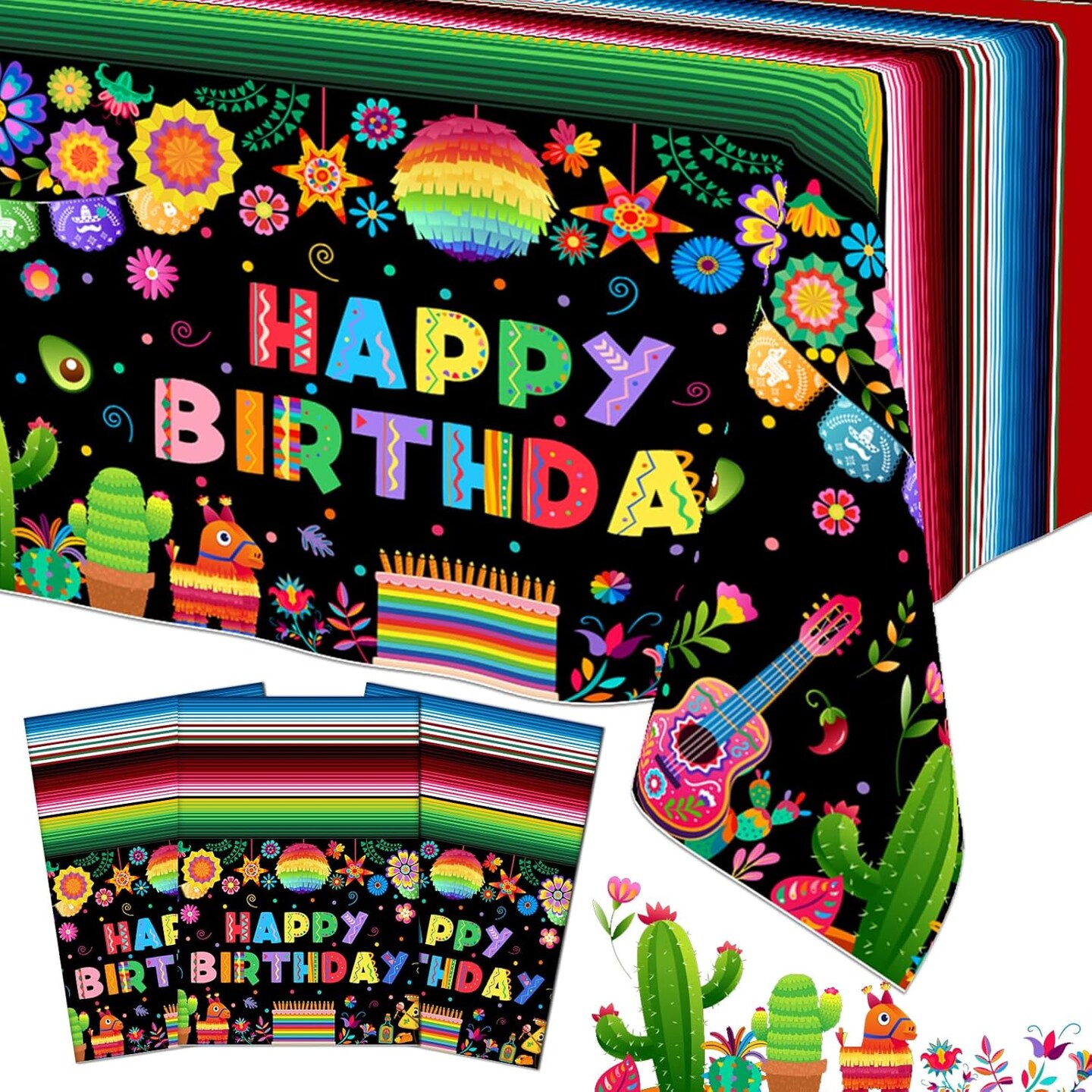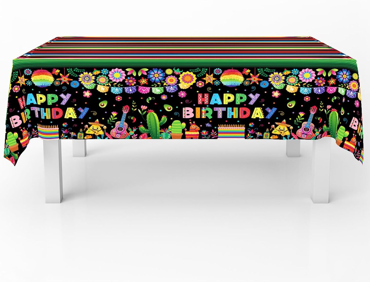 3 Pcs Mexican Fiesta Birthday Party Tablecloth Decorations Plastic Cinco De Mayo Printed Table Cloth Table Cover for Fiesta Taco Happy Birthday Decorations