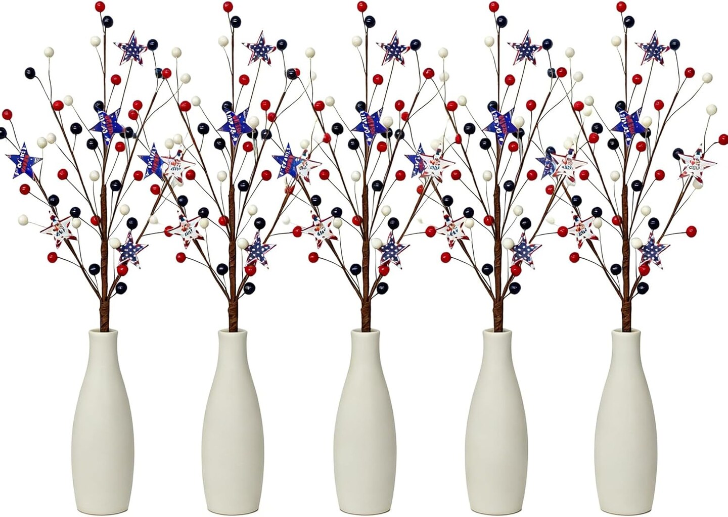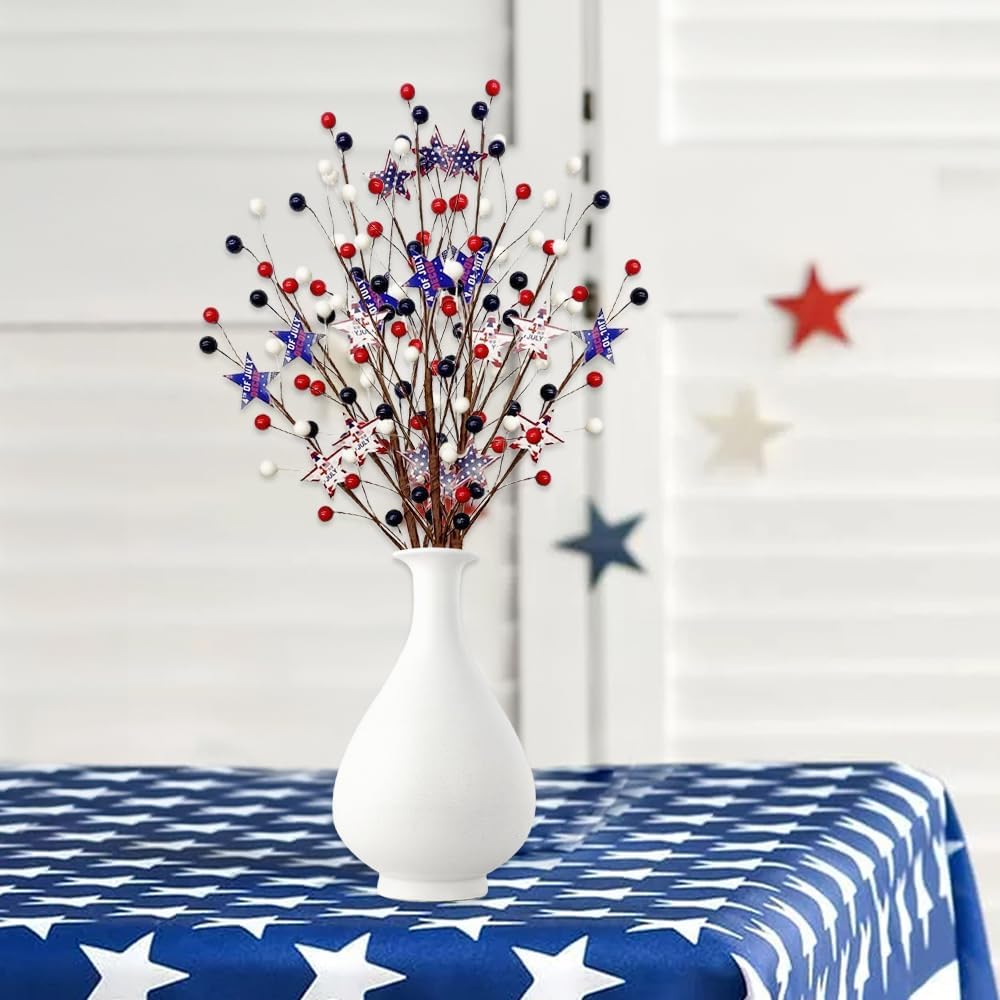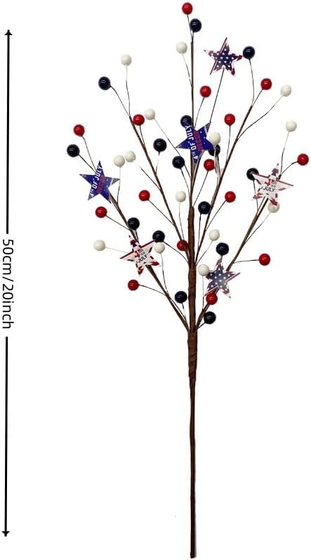3 Pcs Patriotic Artificial Berry Stem Picks – Red, White & Blue Stars, 4th of July Independence Day Décor for Home, Office, Vase Arrangement (Blue)