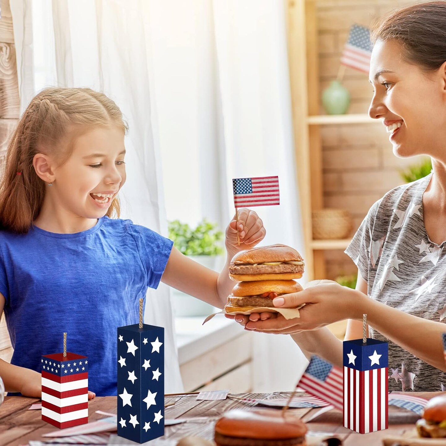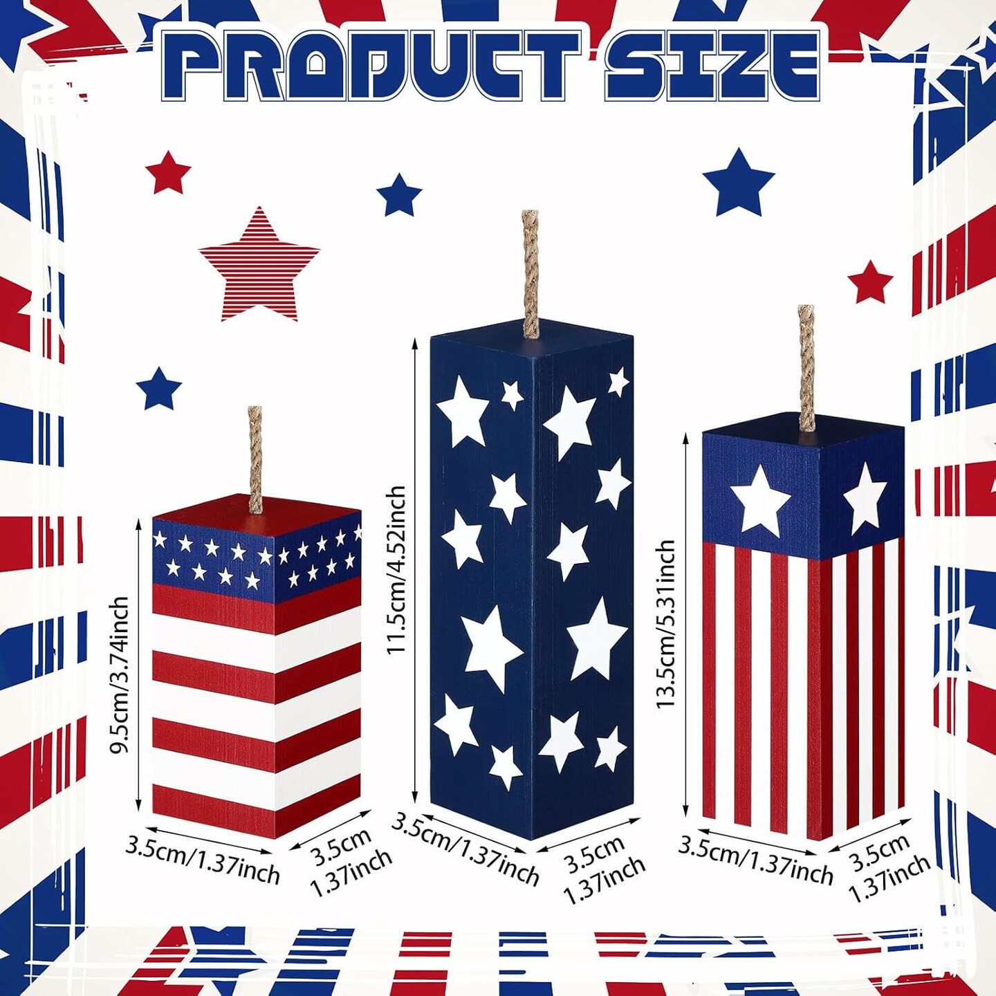 3 Pcs Patriotic Wood Block Sign Memorial Day 4th of July Table Decor Glitter Red White Blue Star Signs Firework Tabletop Centerpiece American Flag Independence Day Tiered Tray Decor for Home