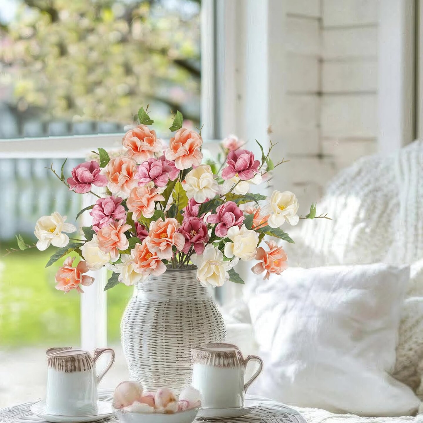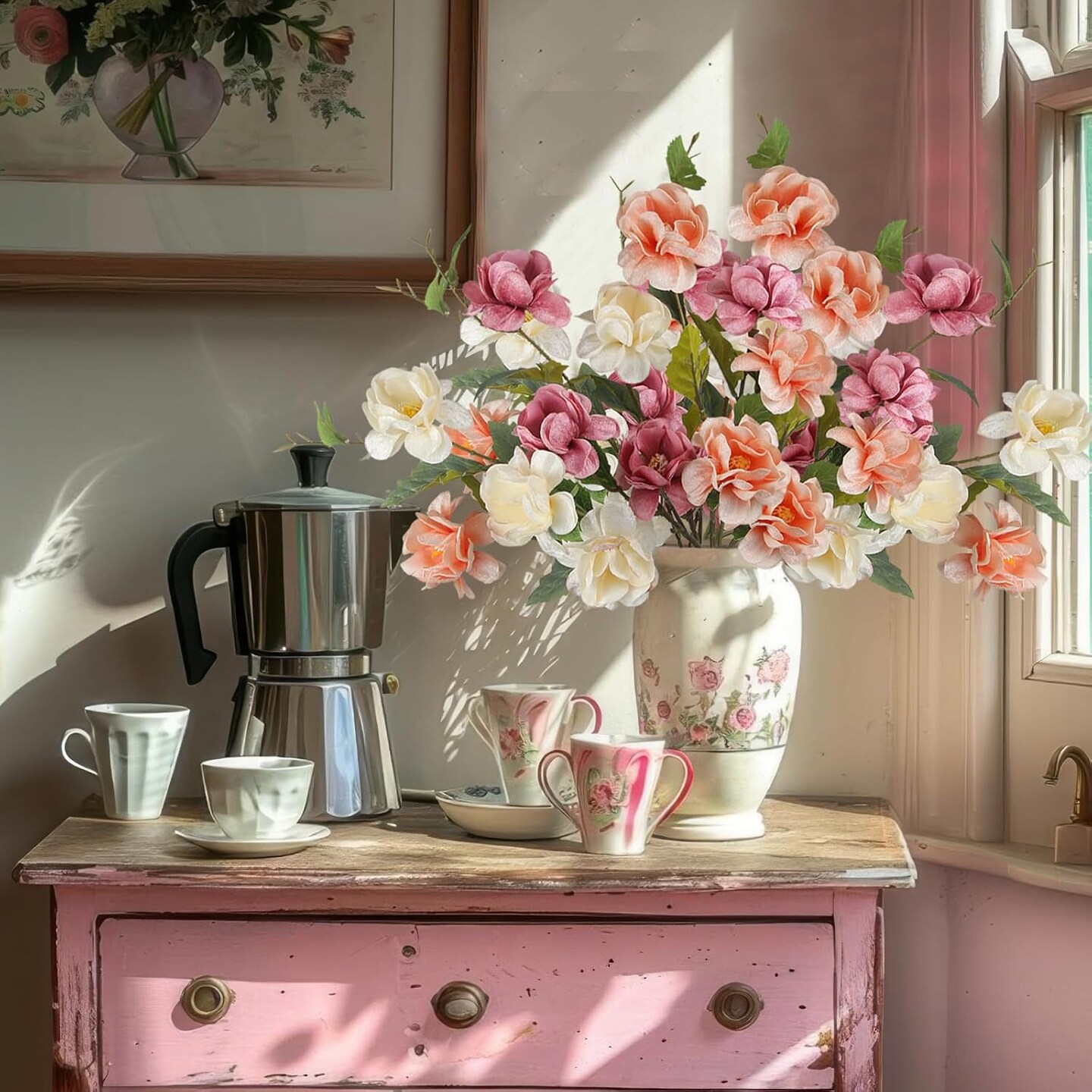 3 Pcs Silk Peonies Artificial Flowers Long Stem Artificial Peonies Bouquet Faux Flowers Bulk with Stems for Vase Floral Arrangements Table Centerpieces Wedding Party Farmhouse Decoration
