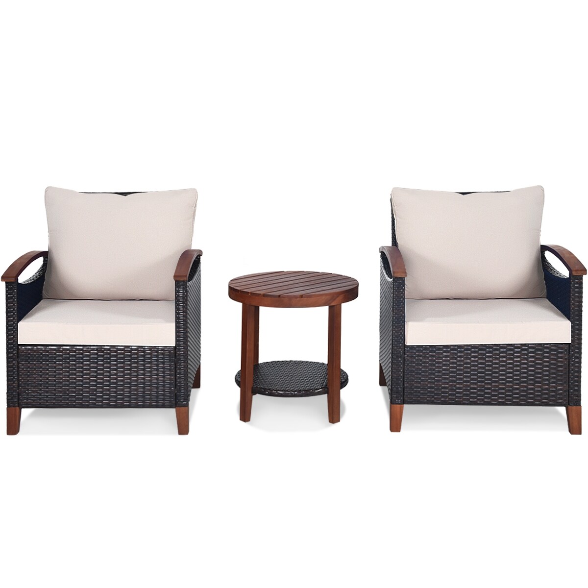 3 pcs Solid Wood Frame Patio Rattan Furniture Set
