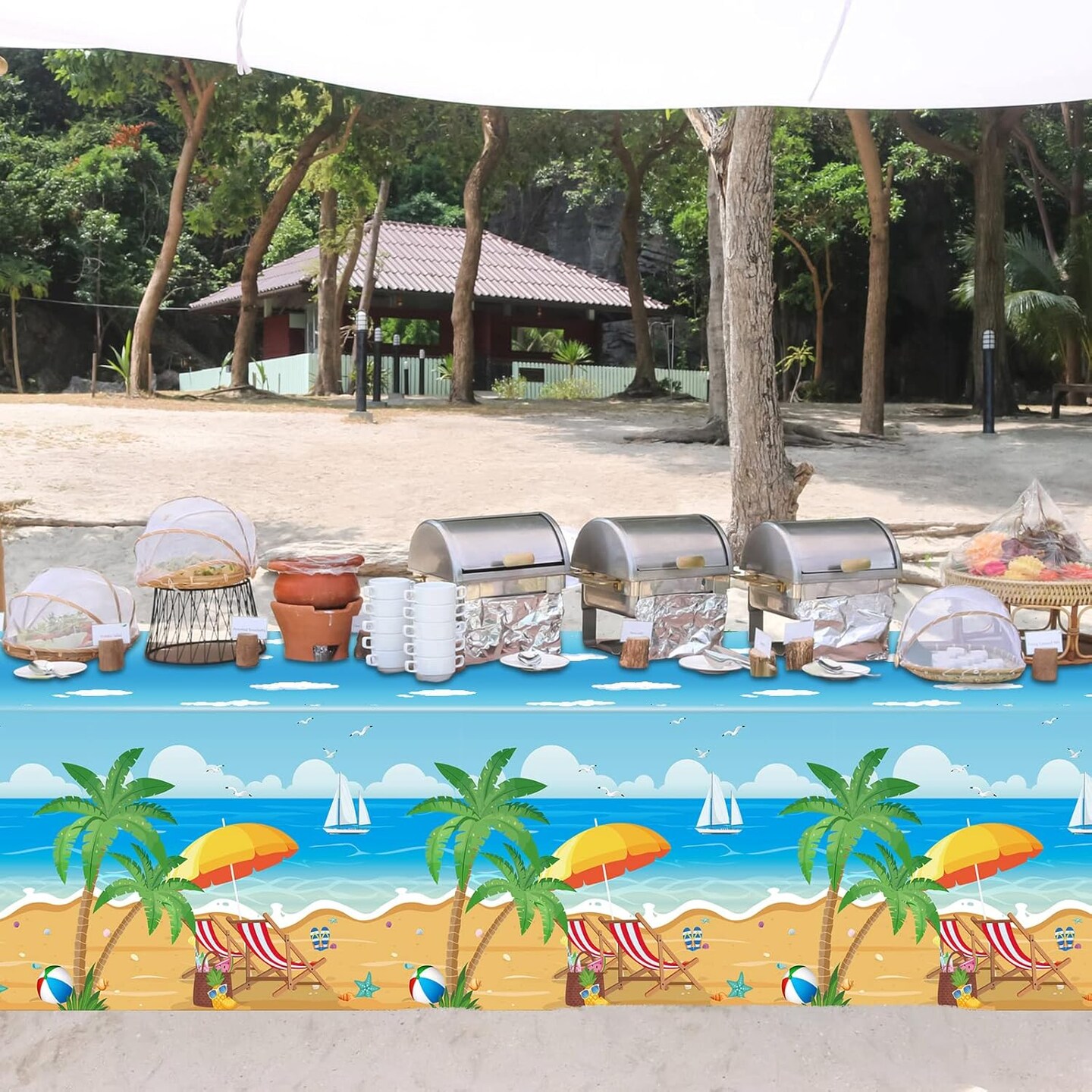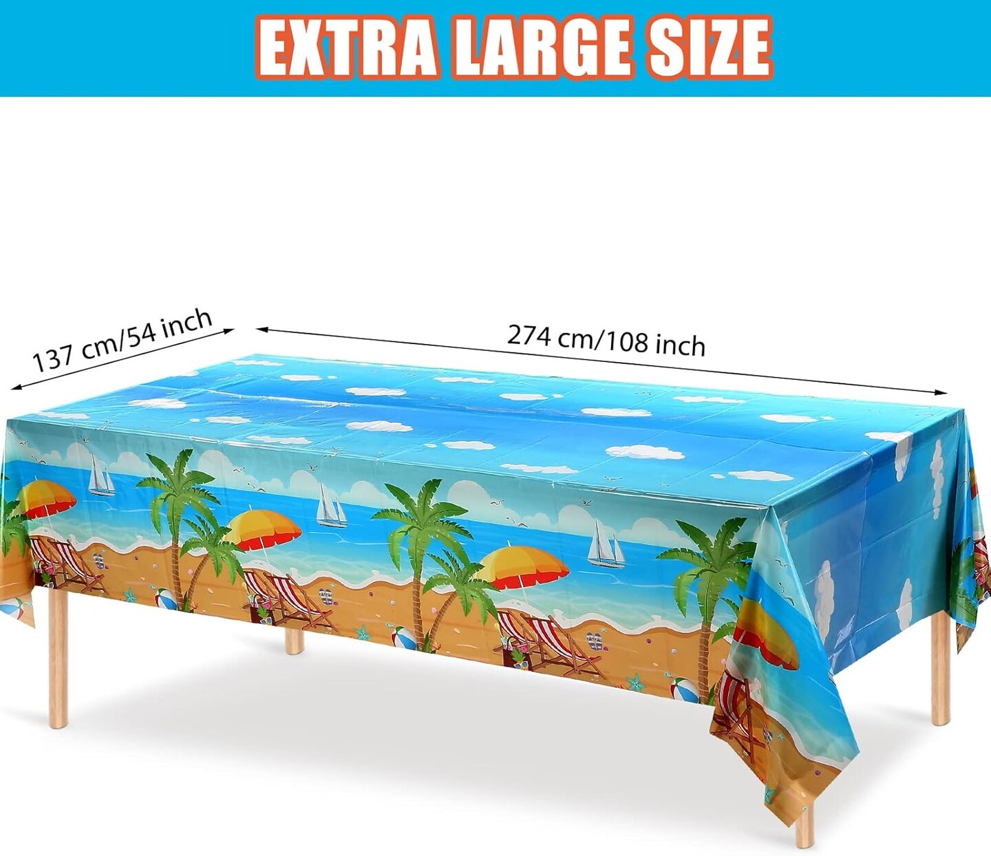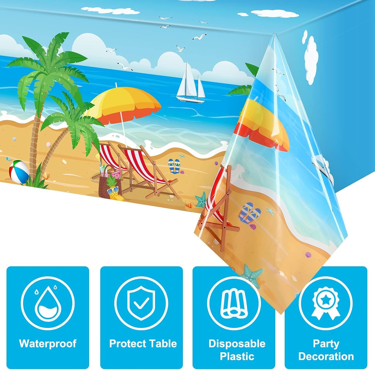 3 Pcs Summer Beach Tablecloths Plastic Hawaiian Pool Party Table Cloth (54 x 108 Inch)