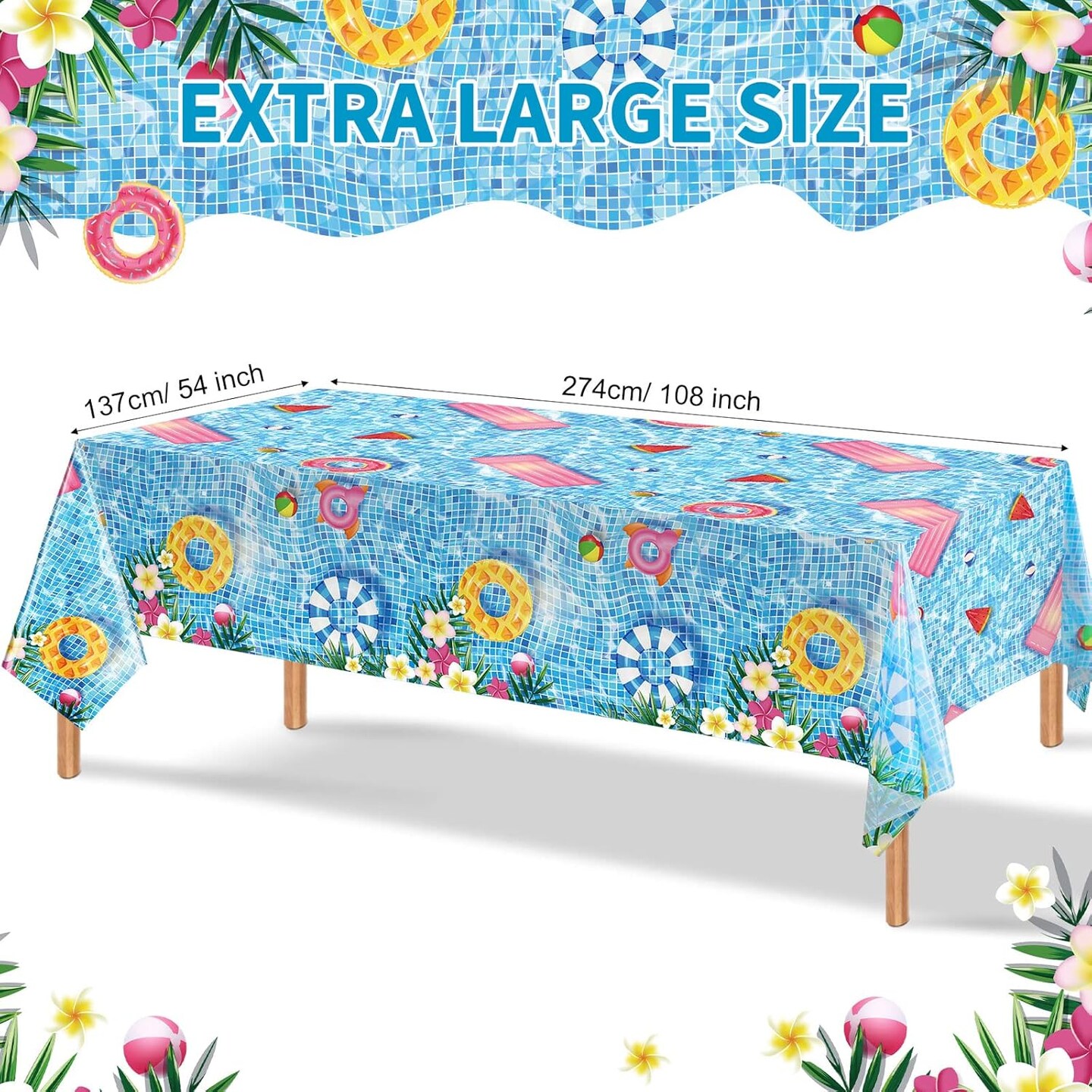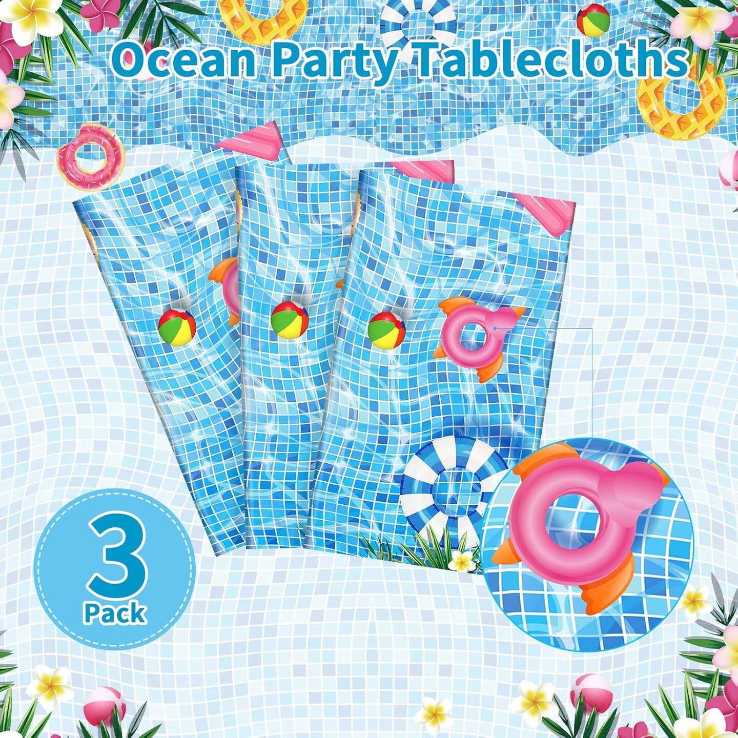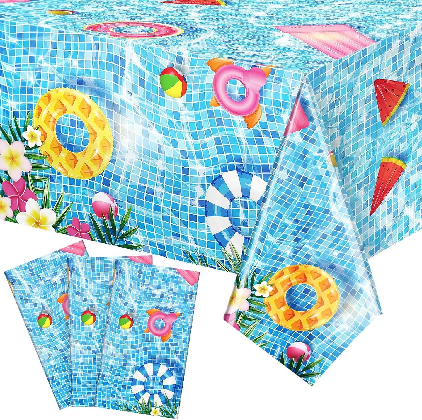 3 Pcs Summer Beach Tablecloths Pool Party Table Covers ( 54 x 108 Inch)