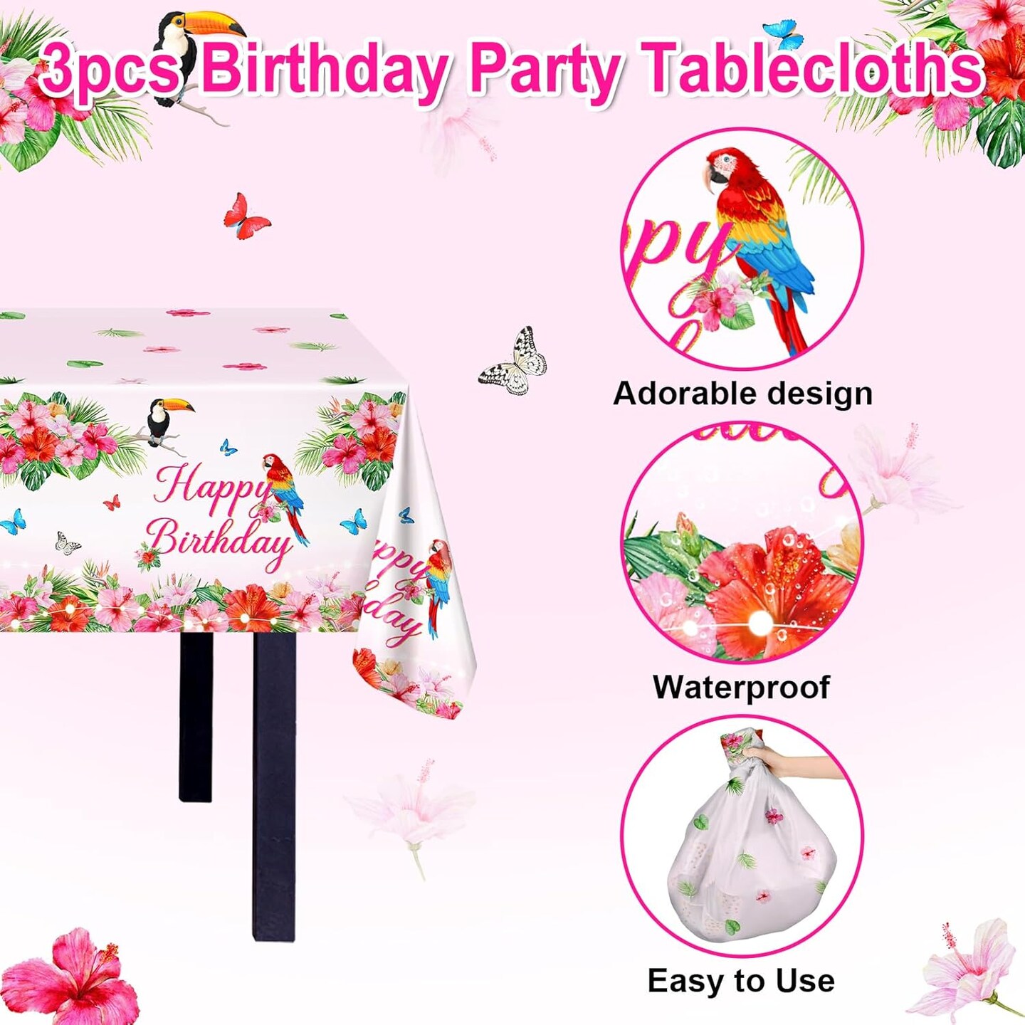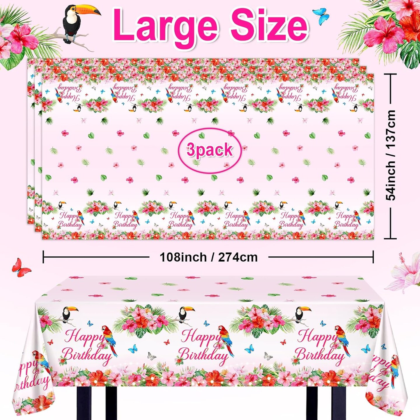 3 pcs Summer Birthday Decorations Hawaiian Table Cloths 108 x 54 inch