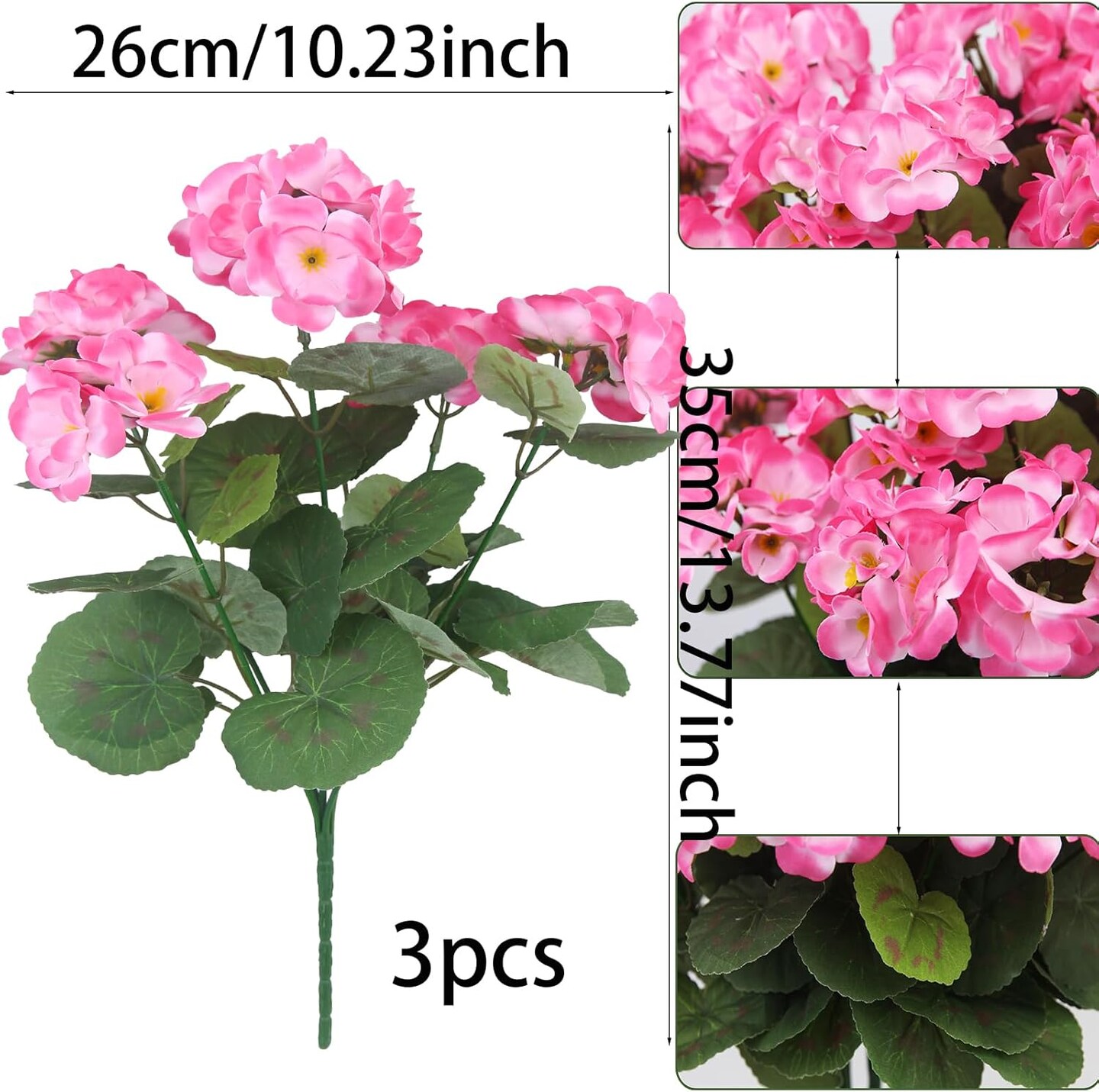 3 Pcs Summer Bushes Artificial Geraniums Flowers