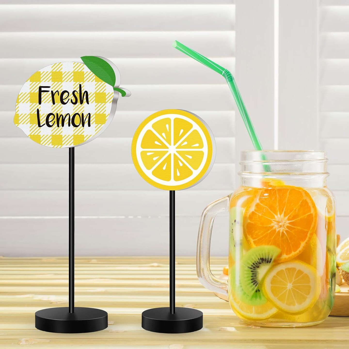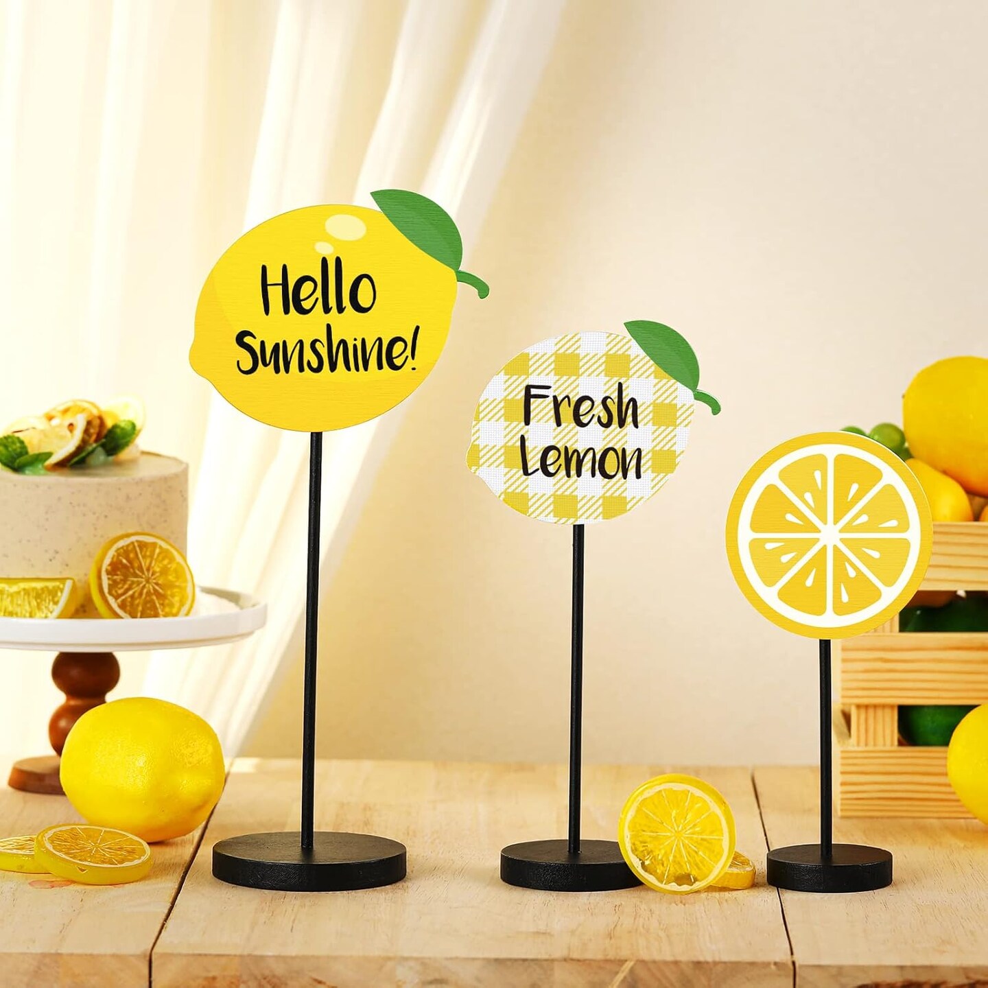 3 Pcs Summer Ocean Tabletop Decor Standing Sea Turtle Lemon Ladybug Easter Bunny Block Wooden Table Centerpiece Sign Coastal Beach Nautical Table Decor for Home Kitchen(Lemon)