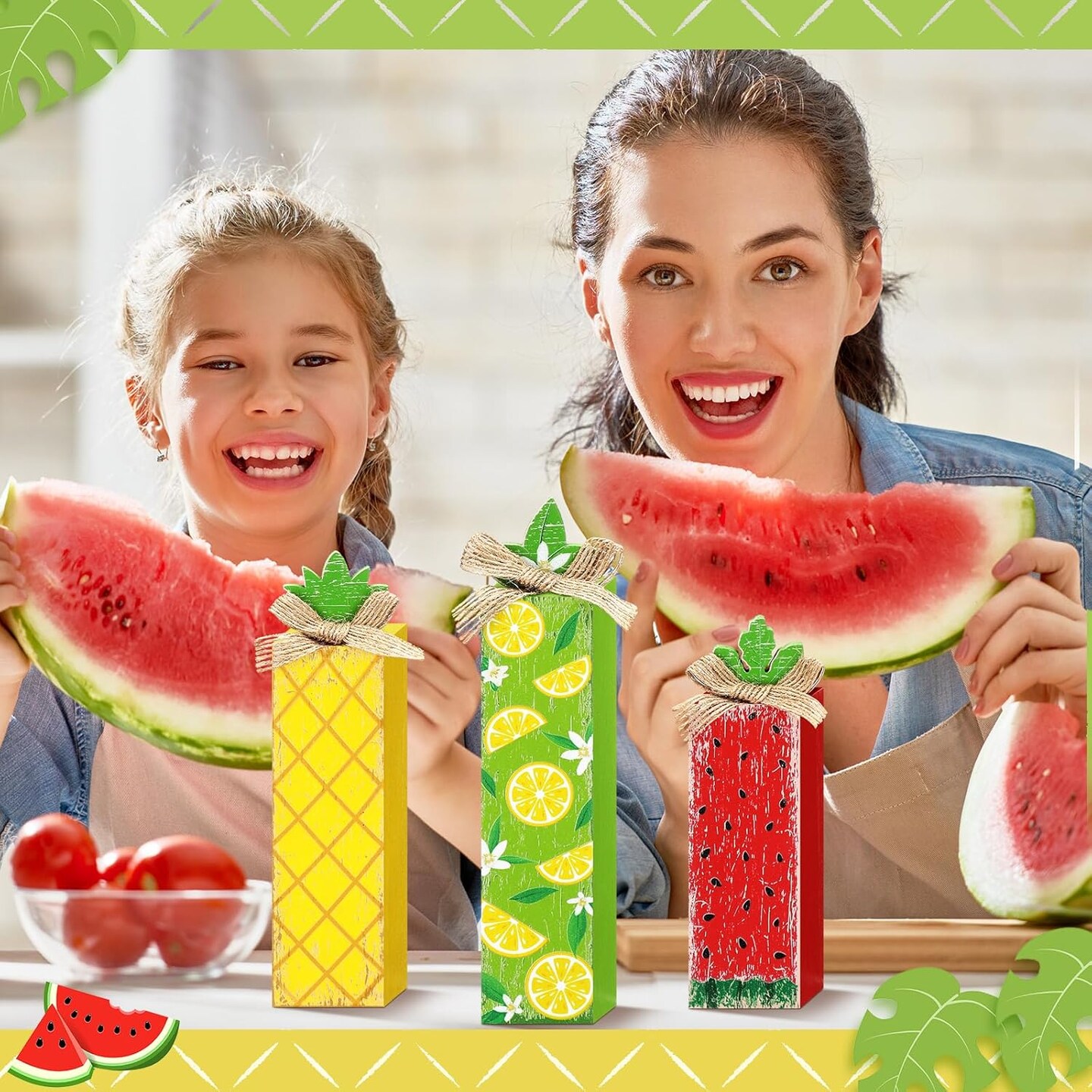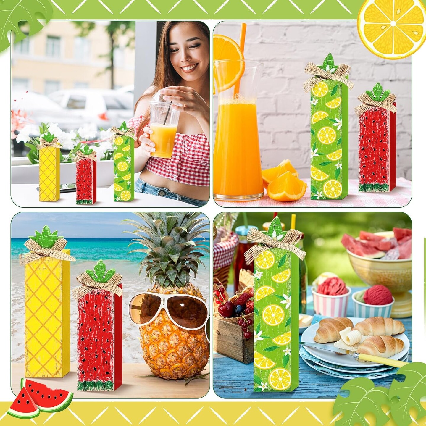 3 Pcs Summer Wood Table Block Sign Lemon Tabletop Decor Watermelon Wooden Tabletop Centerpiece Rustic Farmhouse Wooden Pineapple Decorations for Summer Home Kitchen Party Table Shelf