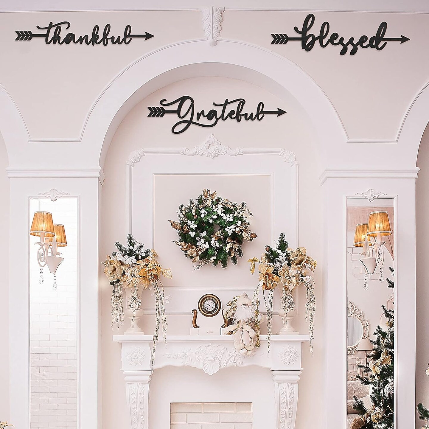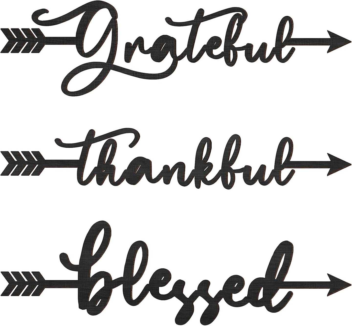 3 Pcs Thankful Grateful Blessed Letter Sign Wood Cutout Sculptures Arrow Signs Wall Decor Black Letters Rustic Wall Art for Home Bathroom Bedroom Farmhouse Kitchen Thanksgiving Decor(Black)