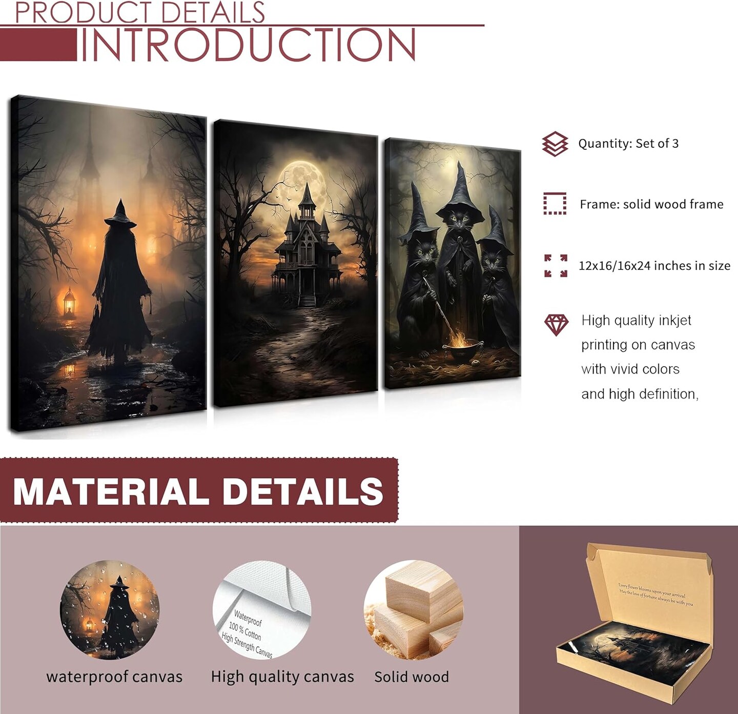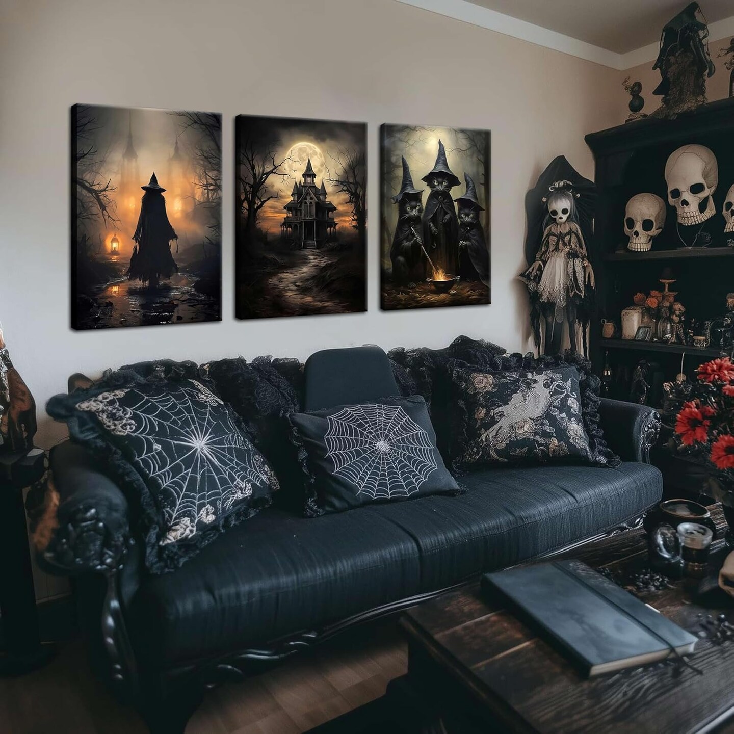 3 Piece Halloween Dark Witch Canvas Wall Art - 12x16 Inches