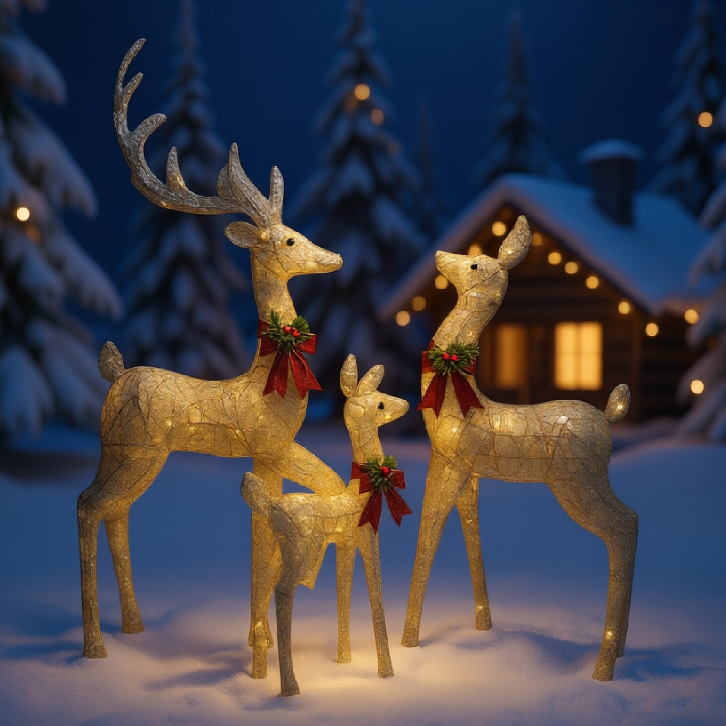 3 Piece LED Lighted Deer Family Set Doe Fawn Outdoor Christmas Yard Decoration 75.5 × 41 × 35 cm