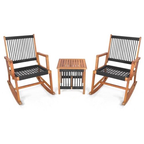 3 Piece Outdoor Wood Patio Furniture Rocking Chair Table Bistro Set
