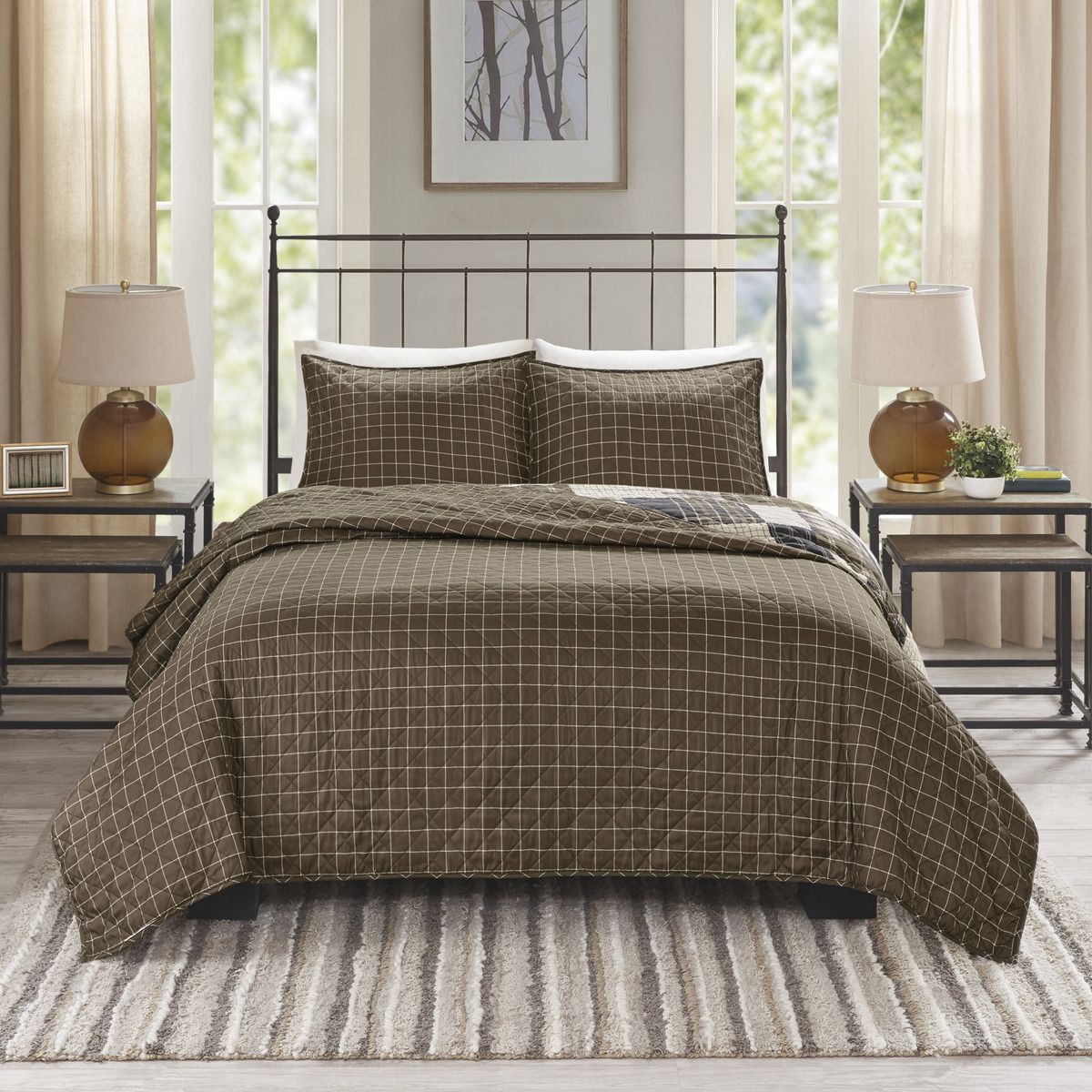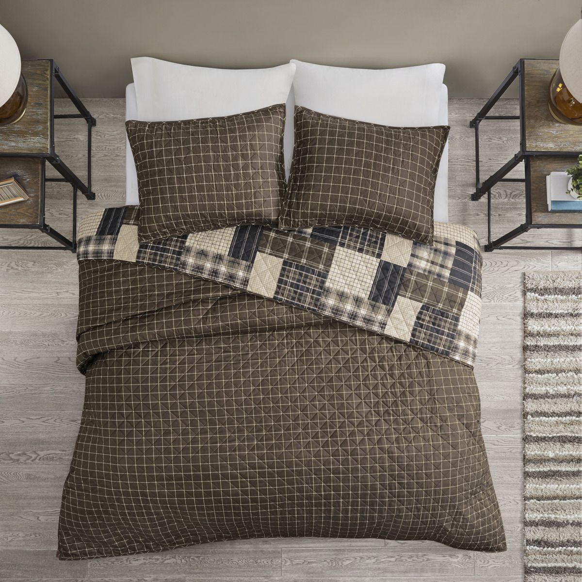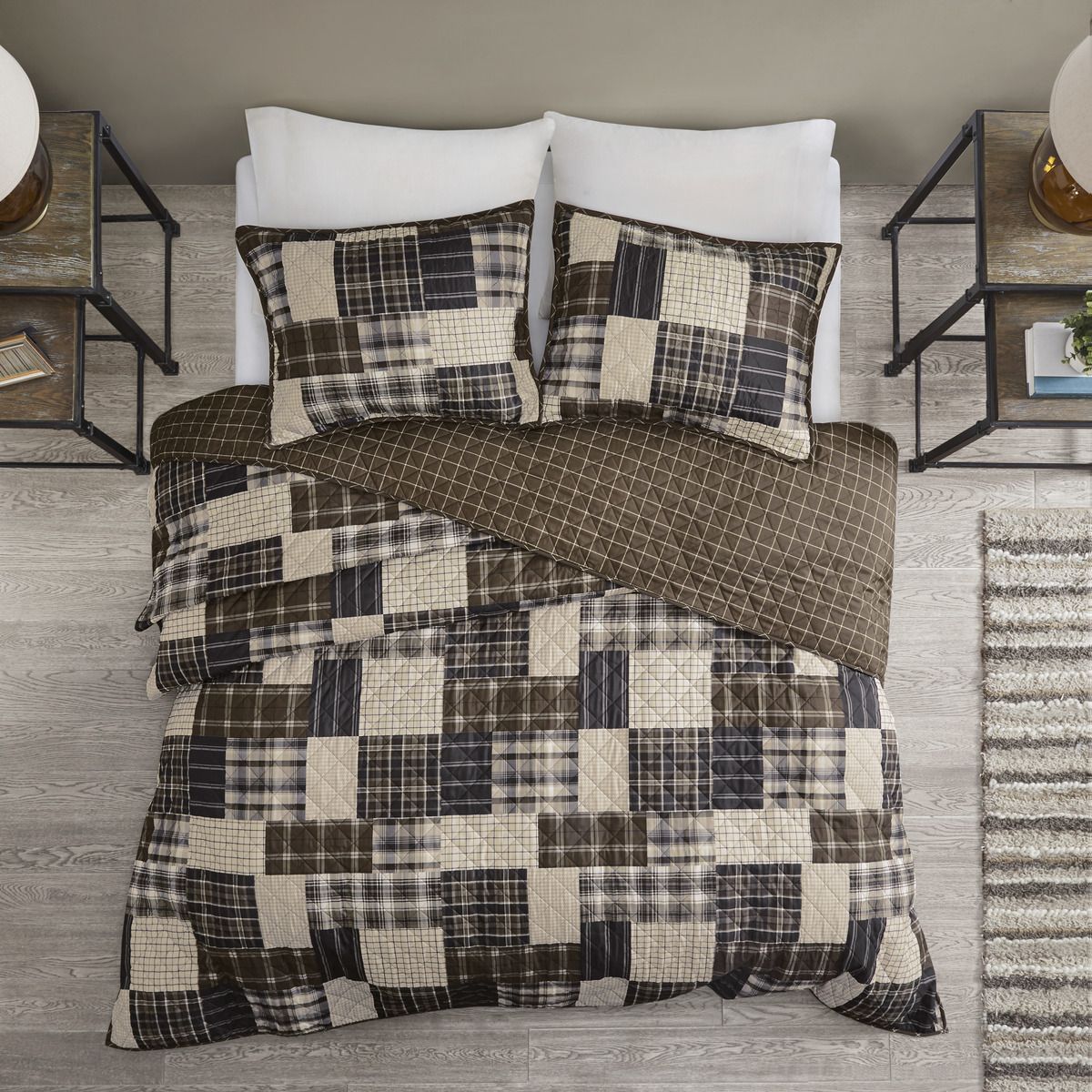 3 Piece Reversible Printed Quilt Set Full/Queen Black/Brown