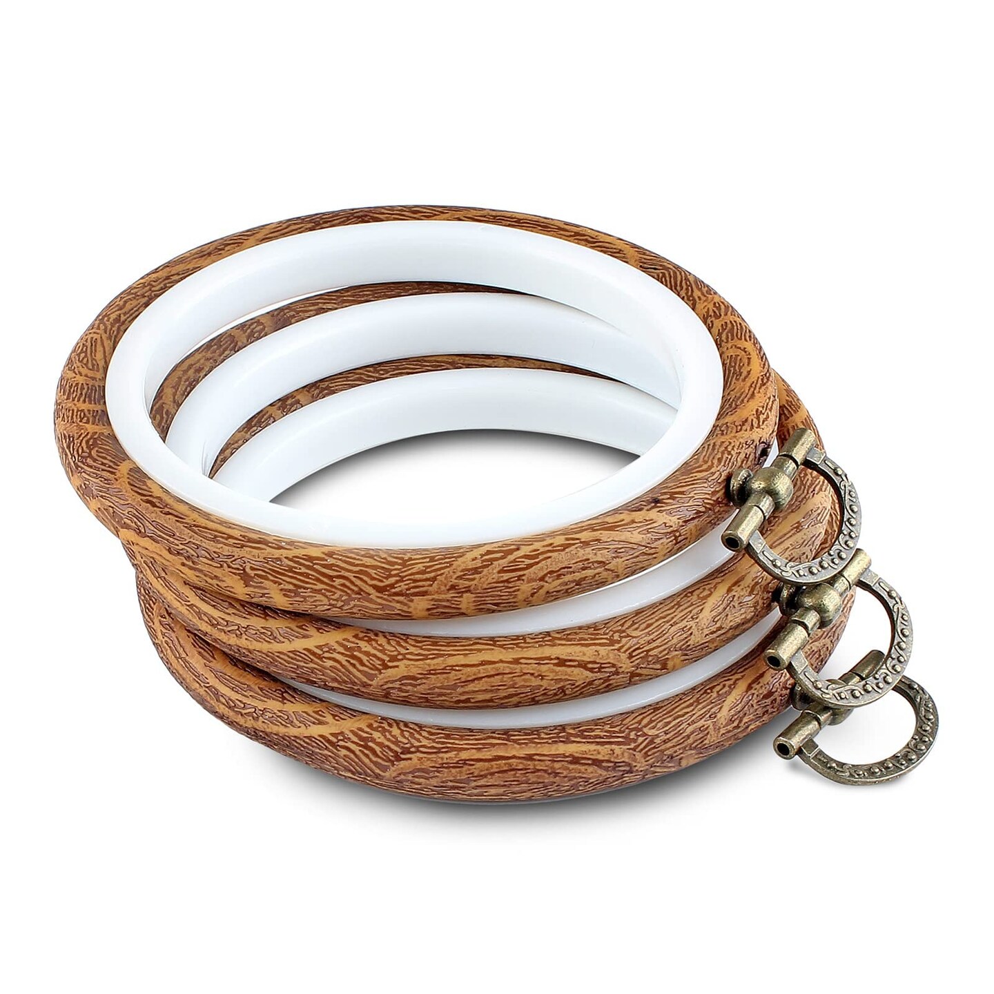 3 Pieces 4 Inch Embroidery Hoop Set Imitated Wood Display Frame Embroidery Hoops Circle Cross Stitch Hoop Ring for Art Craft Sewing and Hanging Ornaments Decor