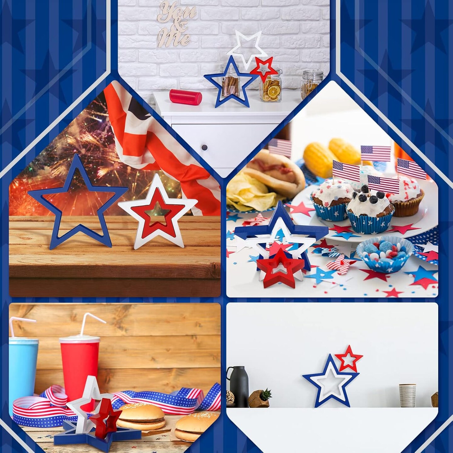 3 Pieces 4th of July Wooden Star Signs Patriotic Decoration Memorial Day Table Decor for Home Independence Day Tiered Tray Shelf Decor (White,Blue,Red)