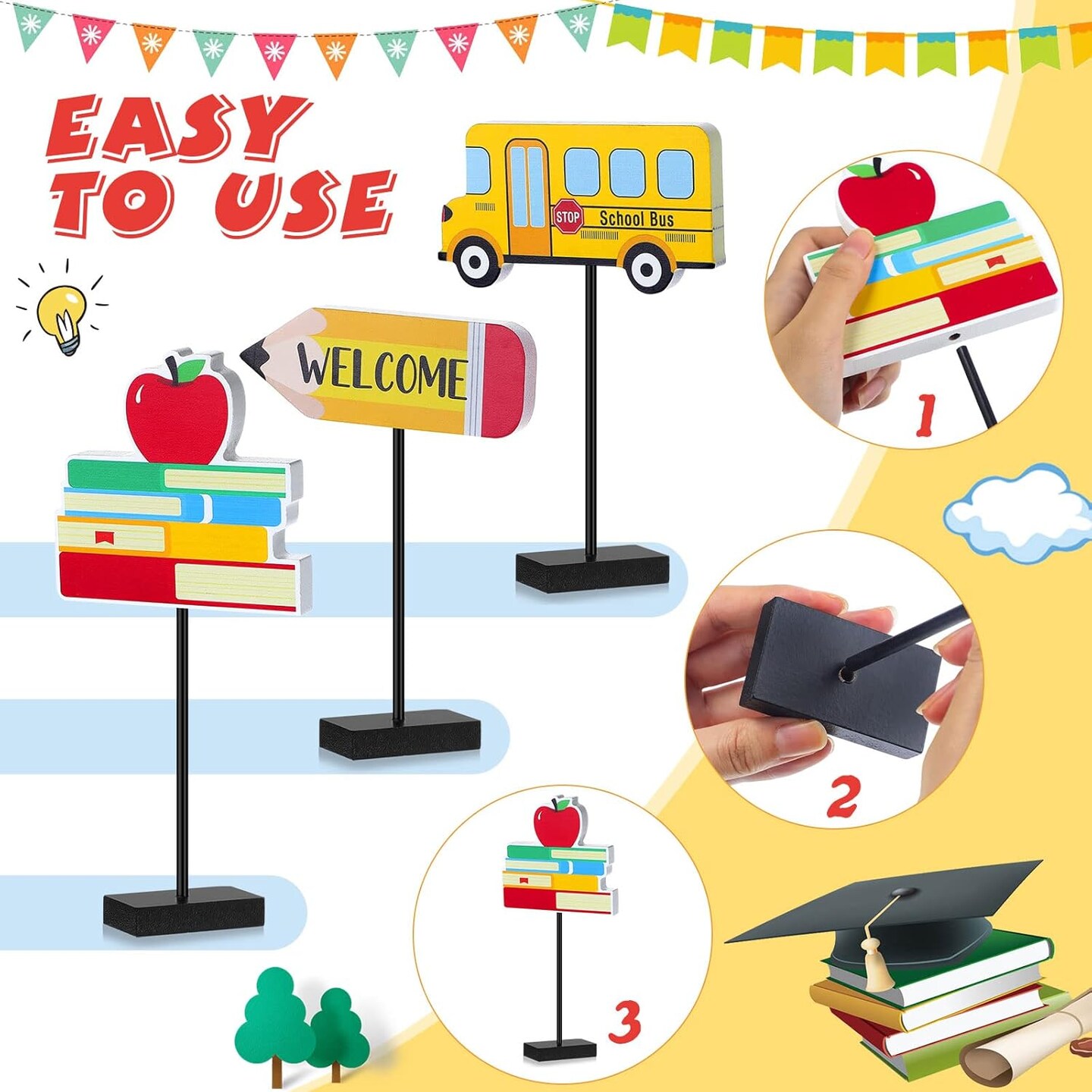 3 Pieces Back to School Wood Table Decor Pencil (Red, Yellow, Green)