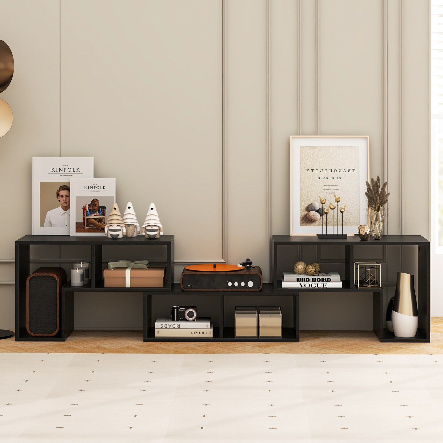3 Pieces Black Engineered Wood TV Stand with Adjustable Shelves Open Storage for Living Room or Bedroom
