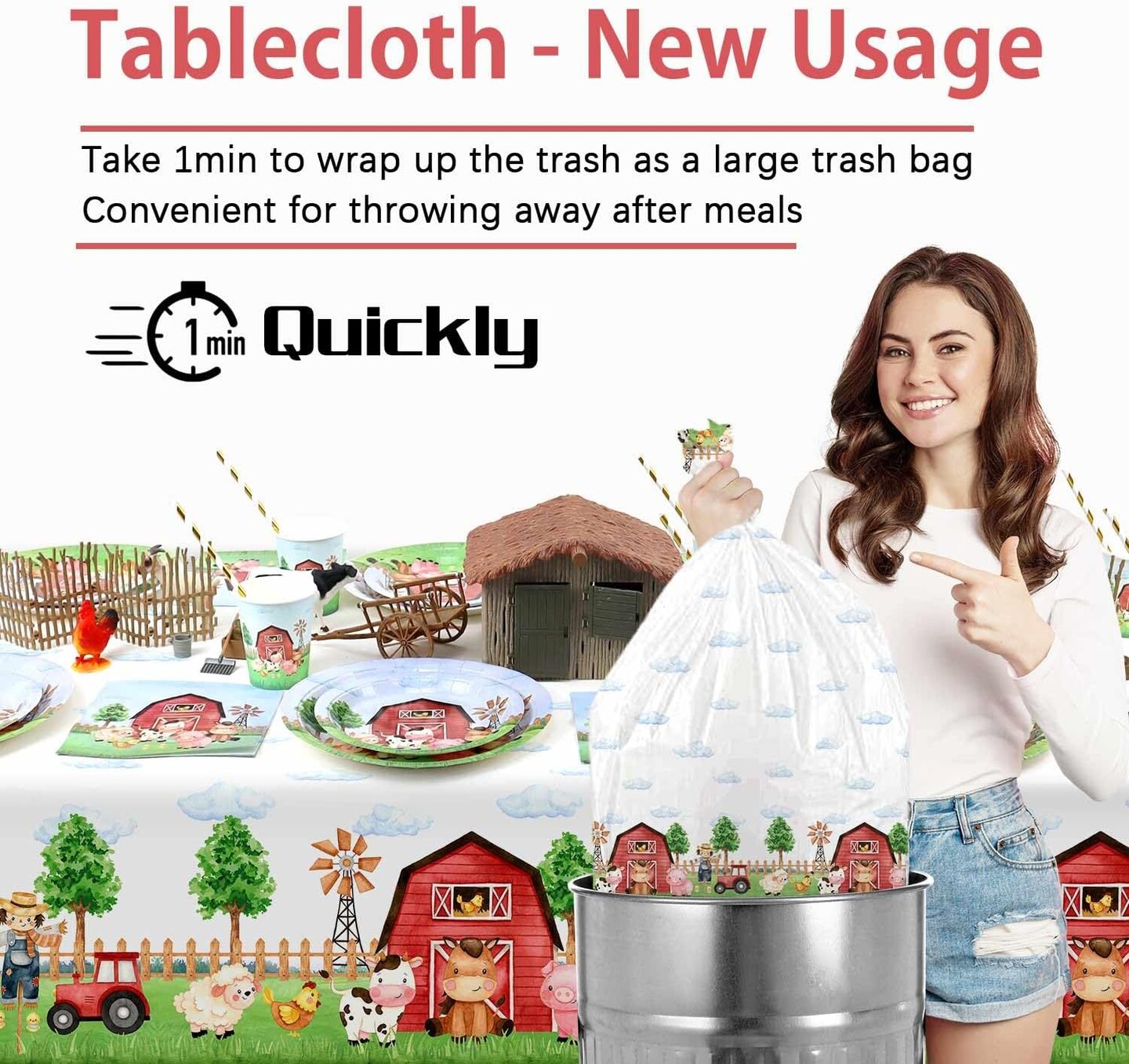 3 Pieces Farm Animal Rectangular Plastic Table Cover