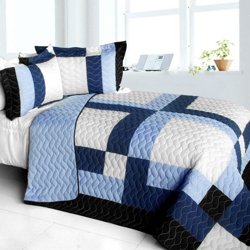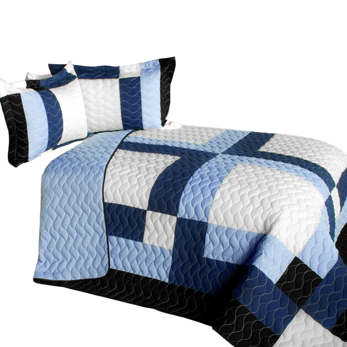 3 Pieces Full/Queen Quilt Set with Plus Pattern Patchwork and Vermicelli Stitching