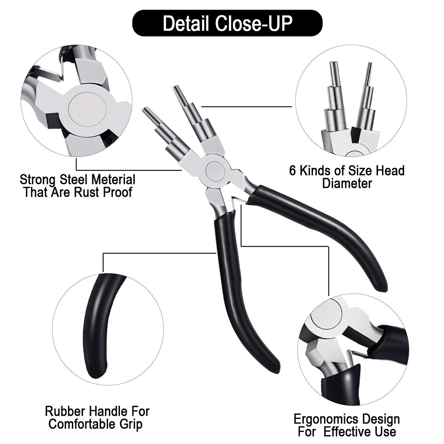 3 Pieces Jewelry Pliers Set Includes 6-in-1 Bail Making Looping Nylon Nose Bent Nose Pliers for DIY Jewelry Beading Making Crafts Tool Wedding Easter Day Supplies