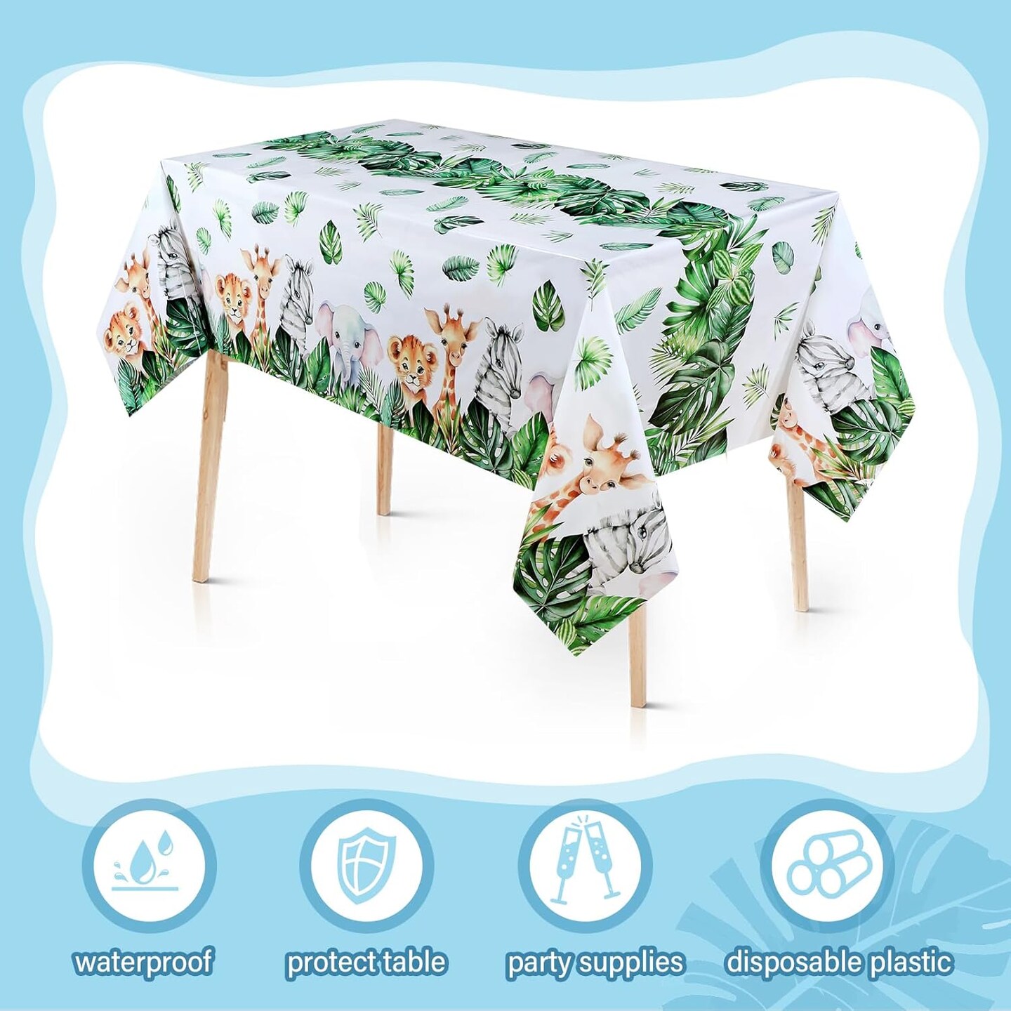 3 Pieces Jungle Safari Tablecloths Wild Animals Plastic Table Cover Palm Leaves Hawaiian Luau