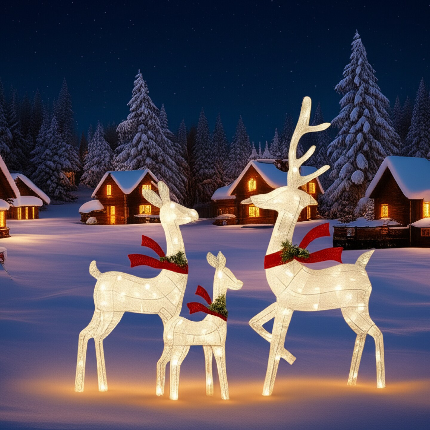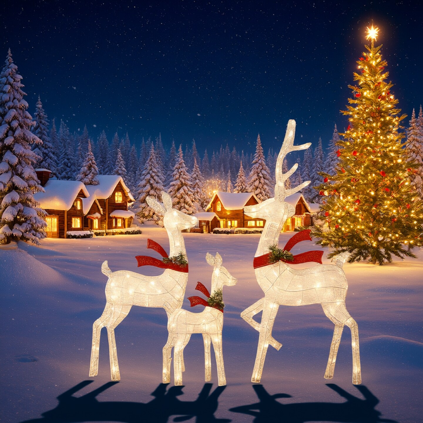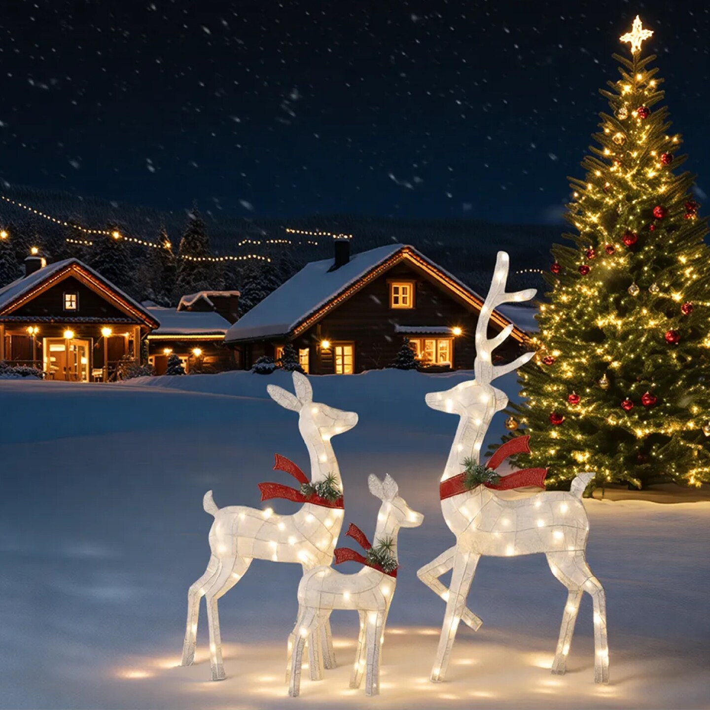 3 Pieces LED Lighted 3D Deer Family Christmas Reindeer Outdoor Holiday Decor 73.3 × 47.5 × 28 cm