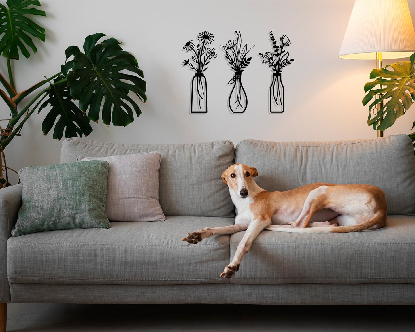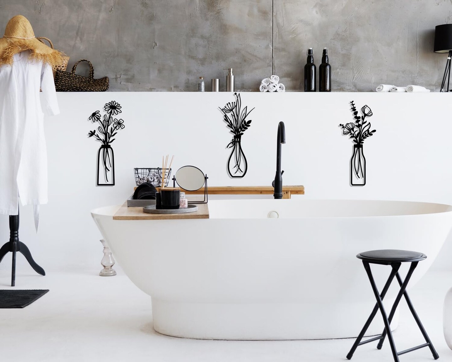 3 Pieces Metal Flowers Wall Arts - Rustic Farmhouse Decor Black Minimalist Flower Wall Decors for Living room Bathroom Bedroom Dining Room - Housewarming Gifts(Black, Vase-C)