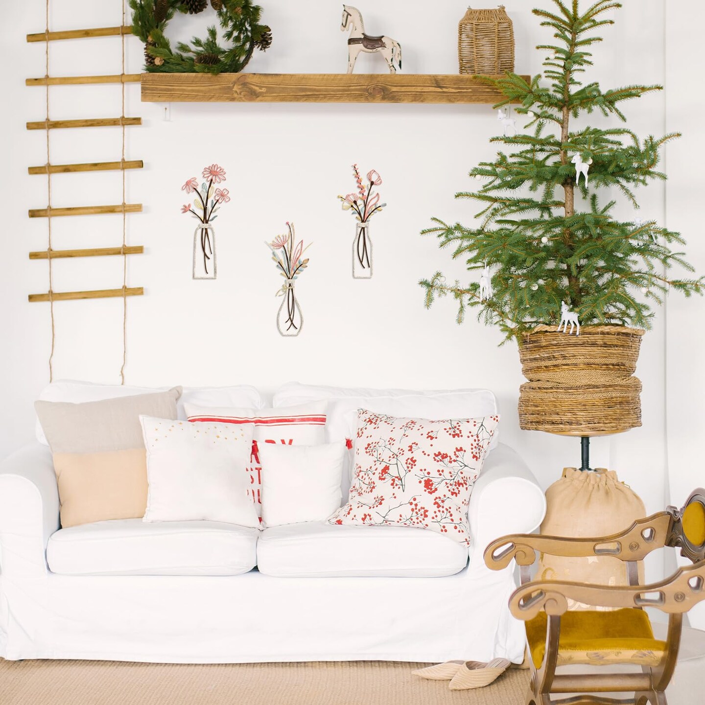 3 Pieces Metal Flowers Wall Arts - Rustic Farmhouse Style Décor Metal Wall Art Black Minimalist Flower Natural Themed Wall Decors for Home Bedroom Dining Room Housewarming (Pink Beige)
