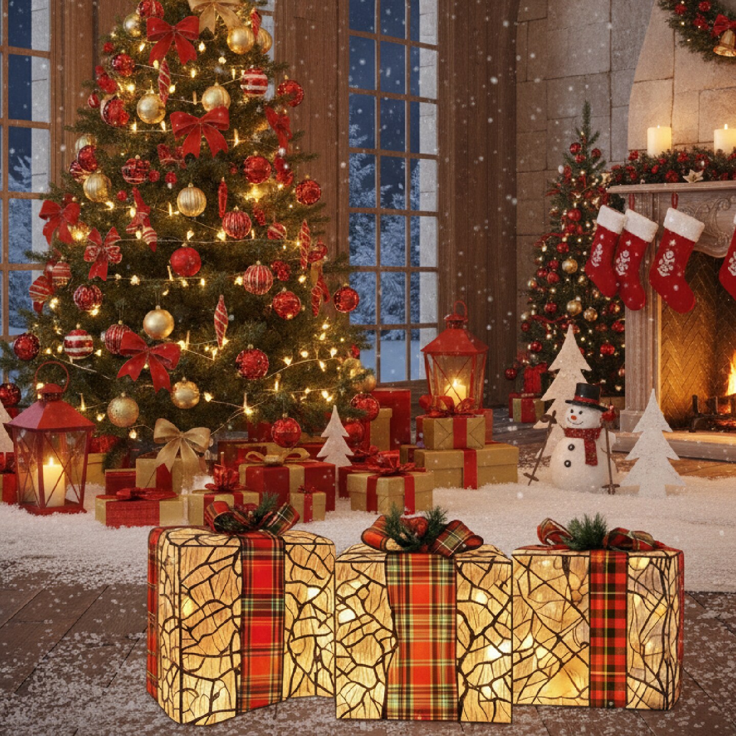 3 Pieces Rattan Gift Box Set Natural Woven Storage Baskets
