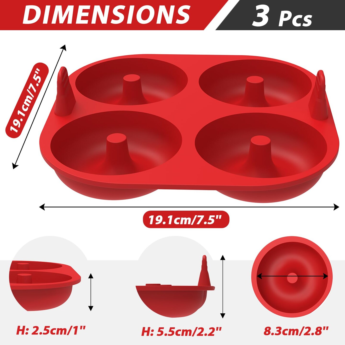 3 Pieces Silicone Air Fryer Donut Pan for Baking, 4-Cavity Donut Pans Nonstick Donut Mold, BPA-Free, Dishwasher Safe