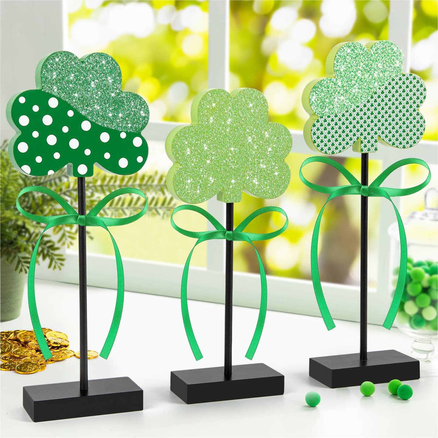 3 Pieces St. Patrick's Day Tiered Tray Decor, St. Patrick's Table Decor Shamrock Wooden Set, Irish-Themed Shamrock Decor, Green Lucky Shamrocks for Home Decor (Light Green)