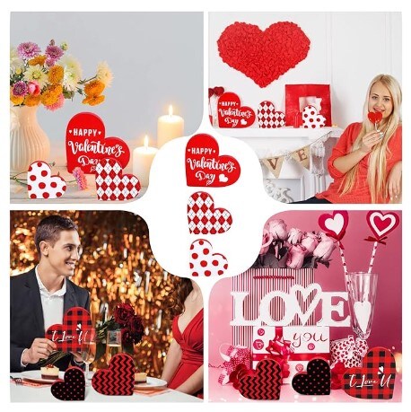 3 Pieces Valentine's Day Wooden Heart Shaped Tiered Tray Decor