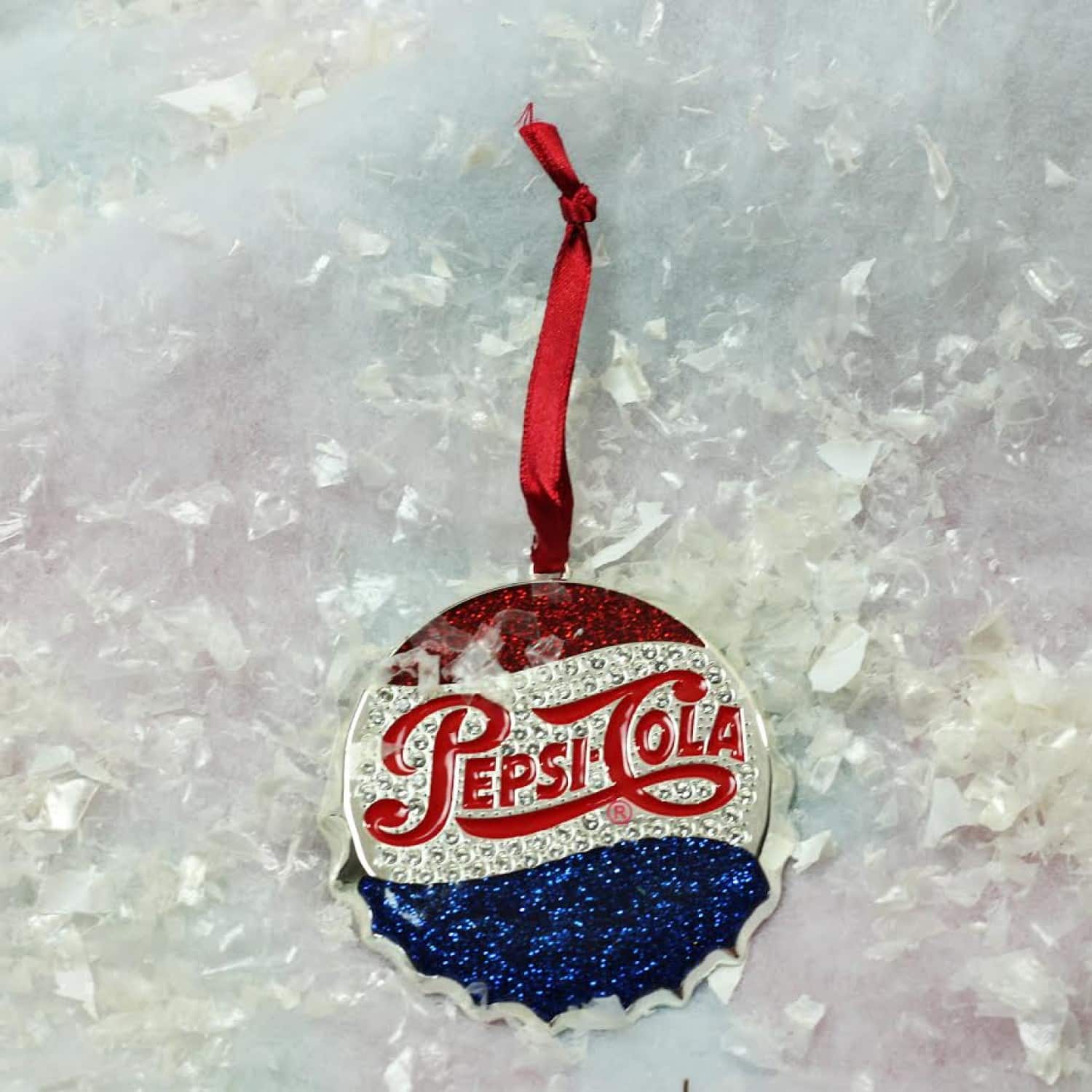3" Sequined & Glitter Blue & Red "PEPSI COLA" Bottle Cap Logo Christmas Ornament