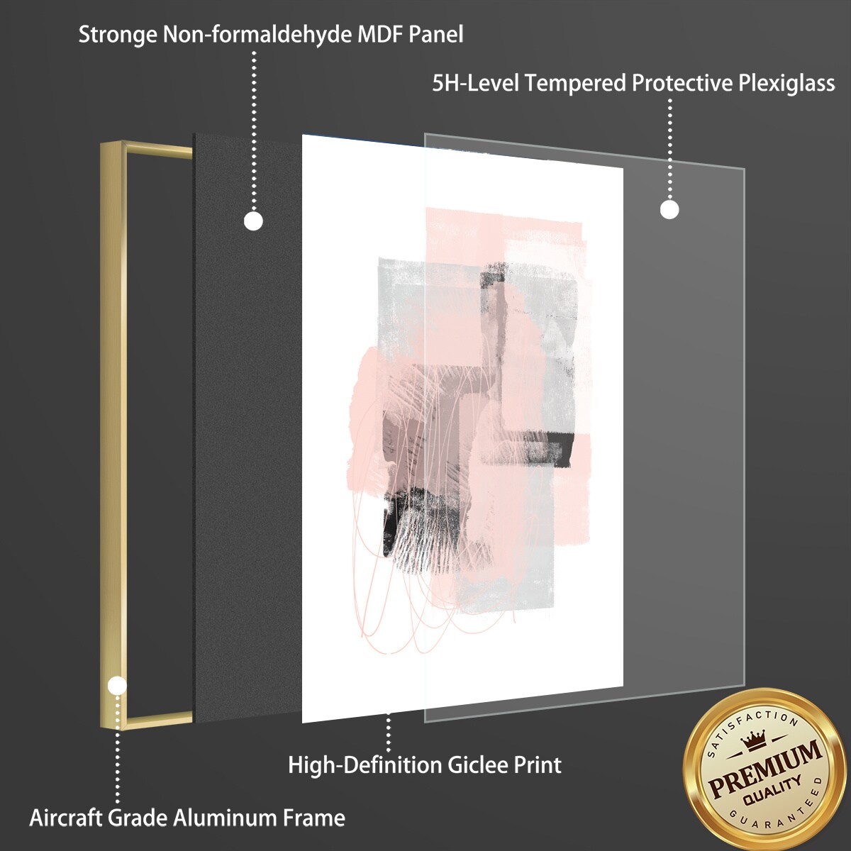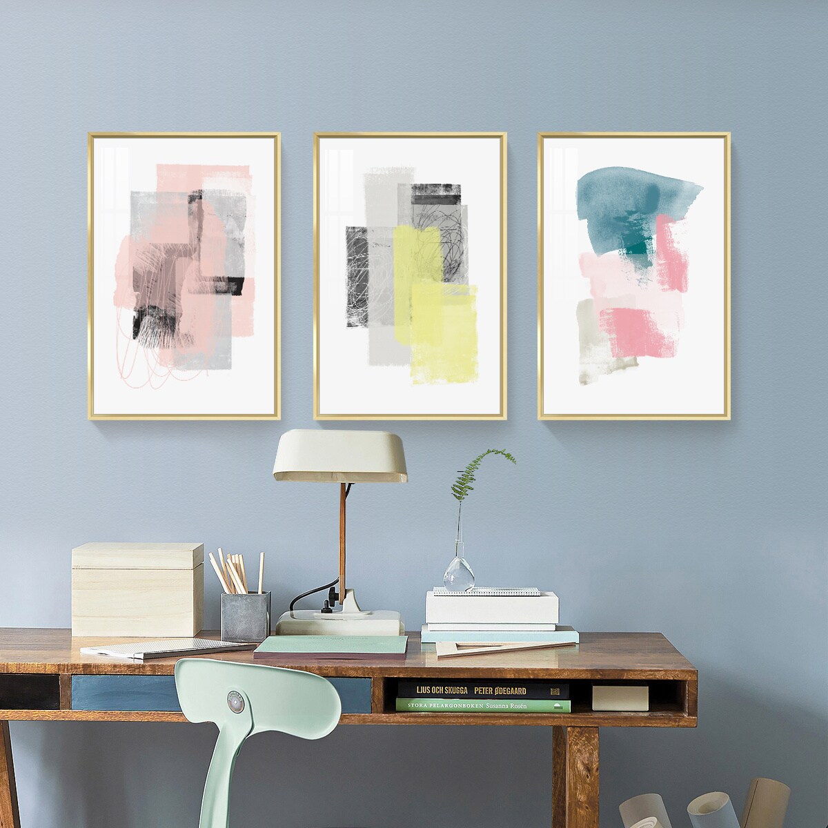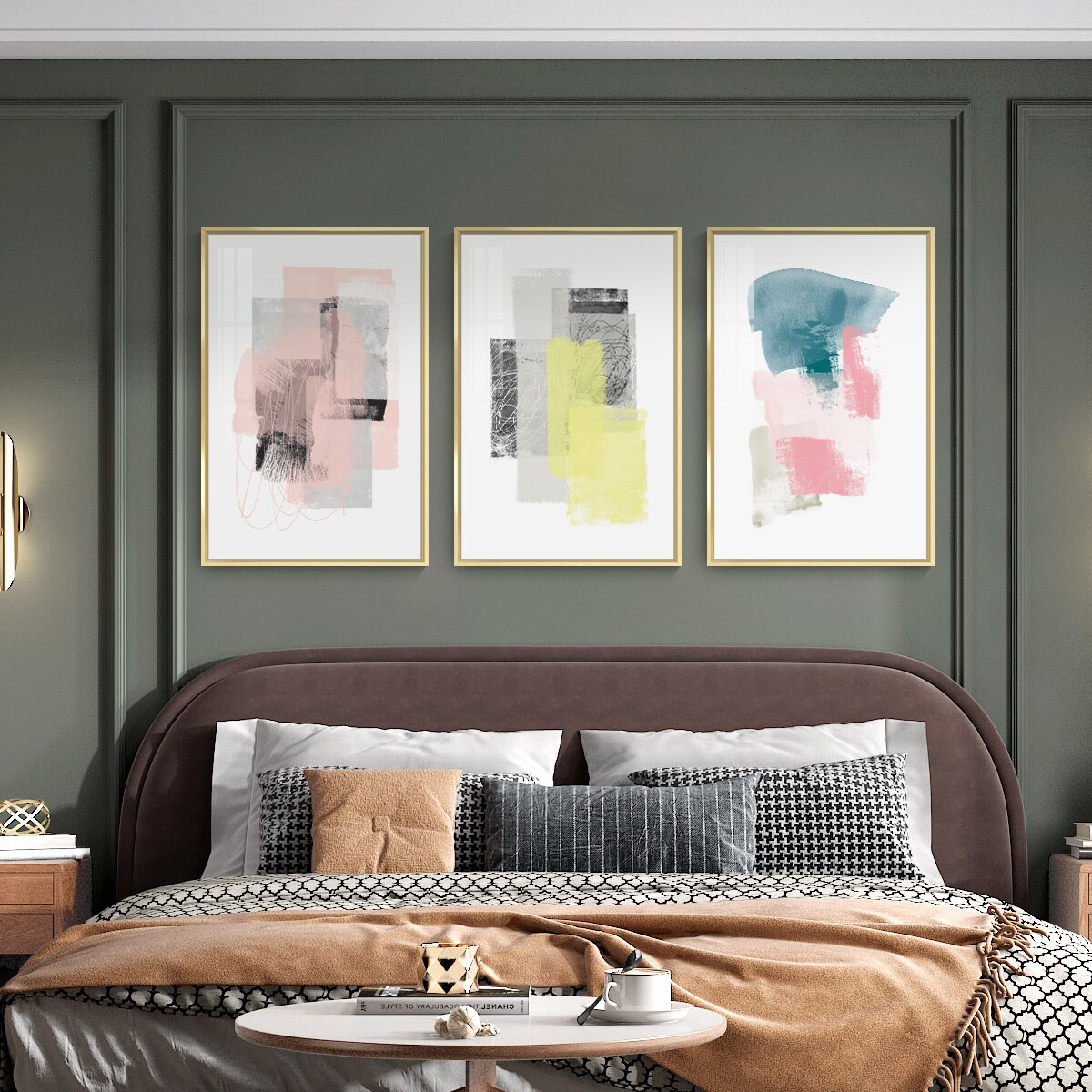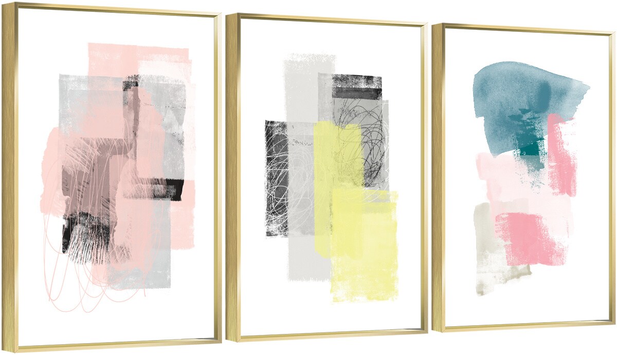 3 Set Framed Canvas Wall Art Oil Paintings - Blocks Paintings