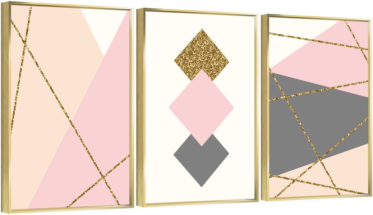 3 Set Framed Canvas Wall Art Oil Paintings - Gold Glitter