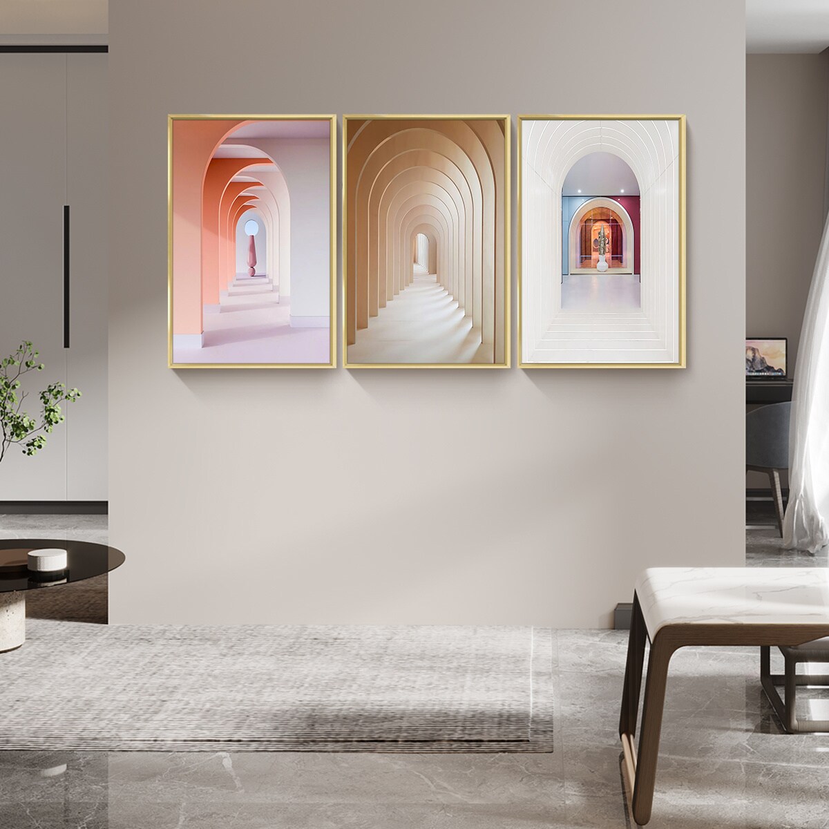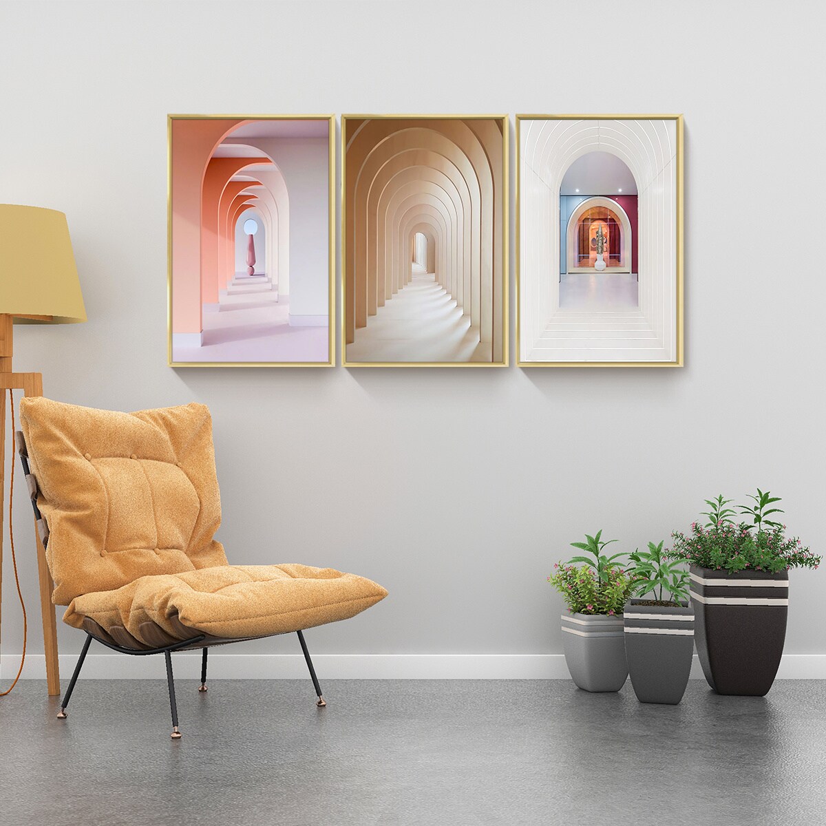 3 Set Framed Canvas Wall Art Oil Paintings - Through the Arch