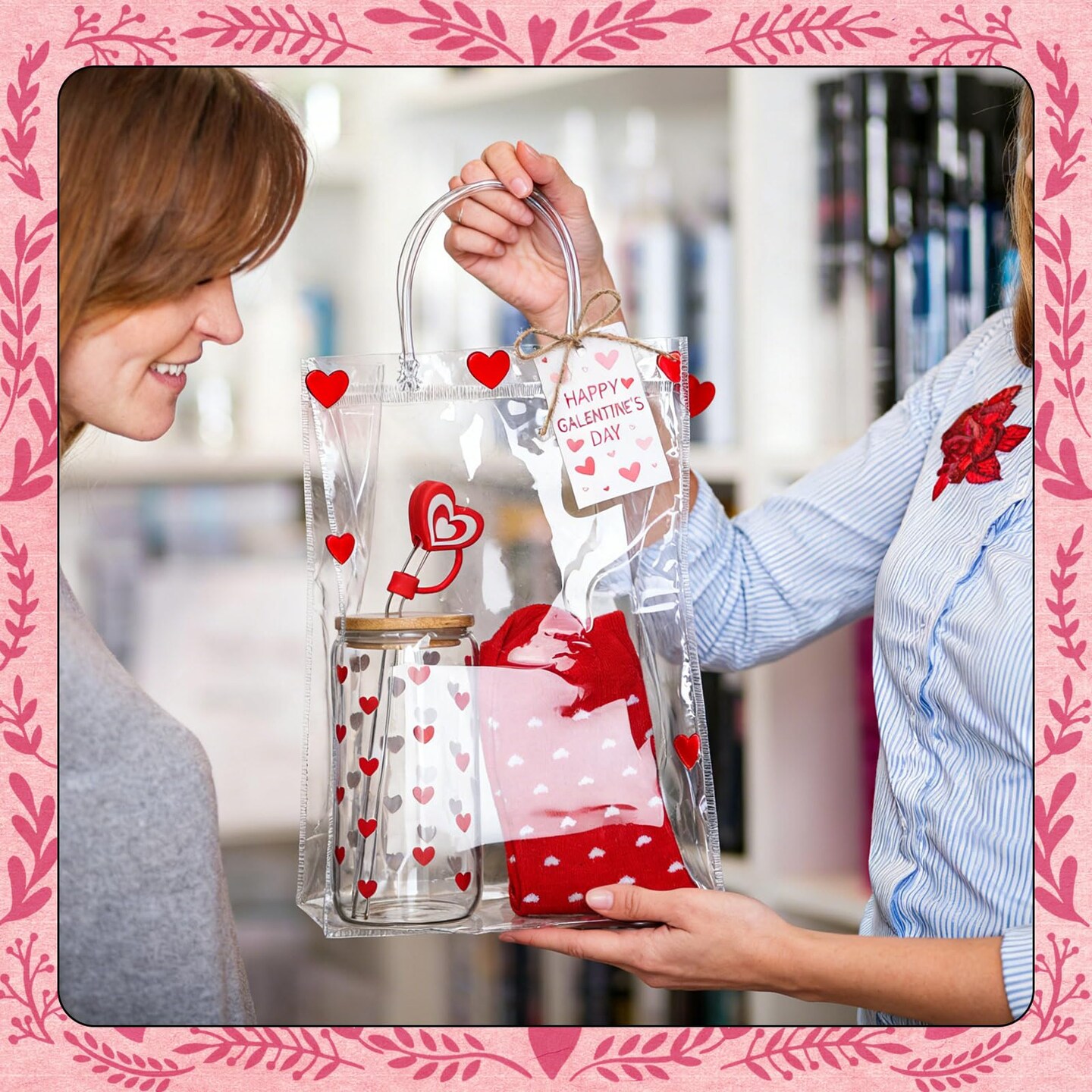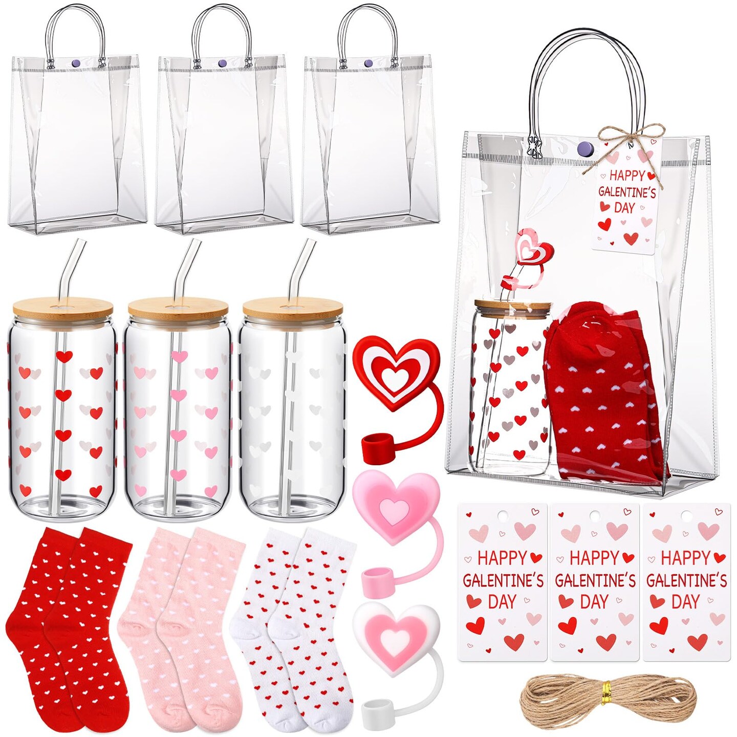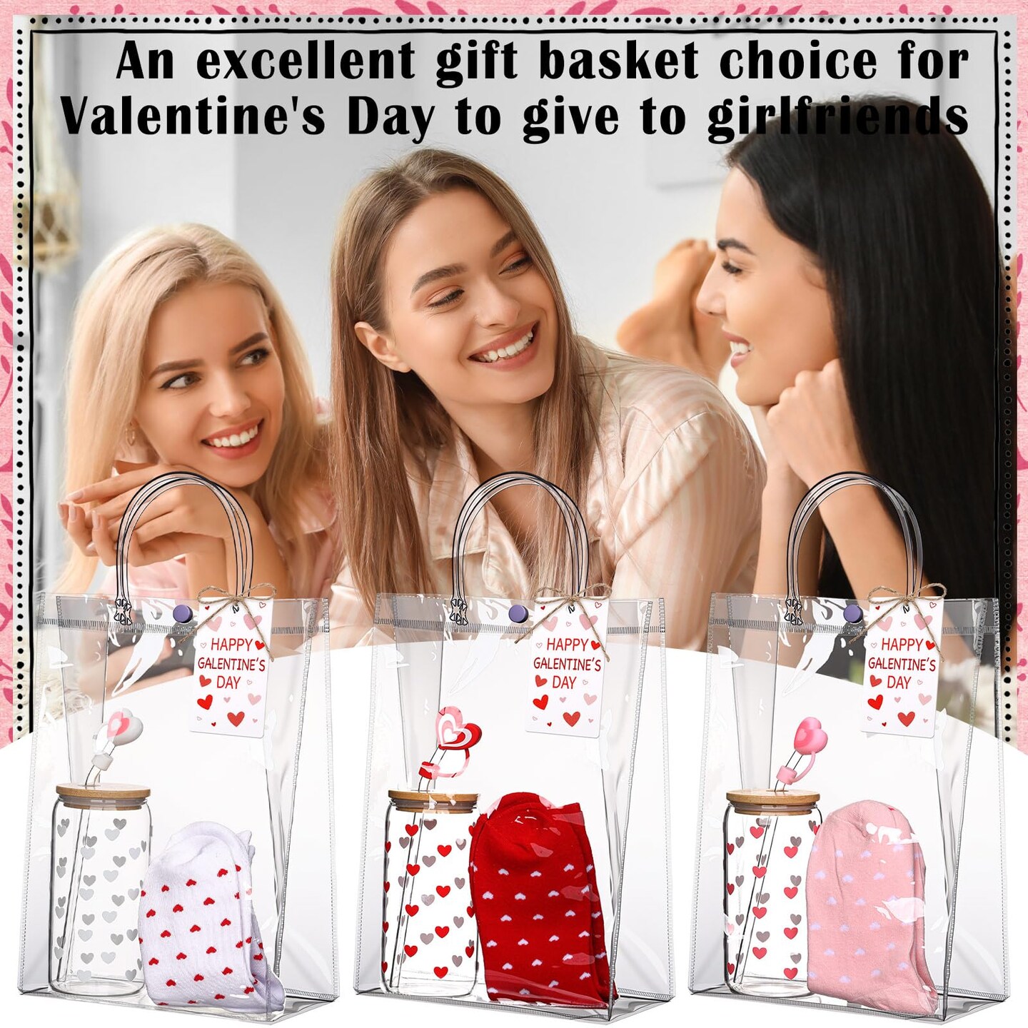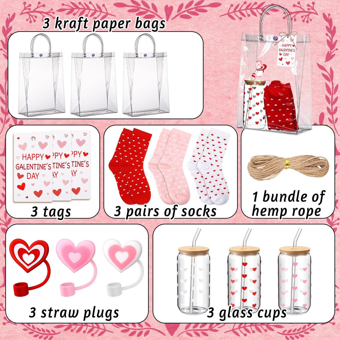 3 Set Happy Galentine's Day Gifts Set for Best Friend Include 16oz Coffee Cups with Straw Stoppers Heart Socks Gift Bags Galentine's Day Tags with Hemp Rope for Bestie Valentines Gifts