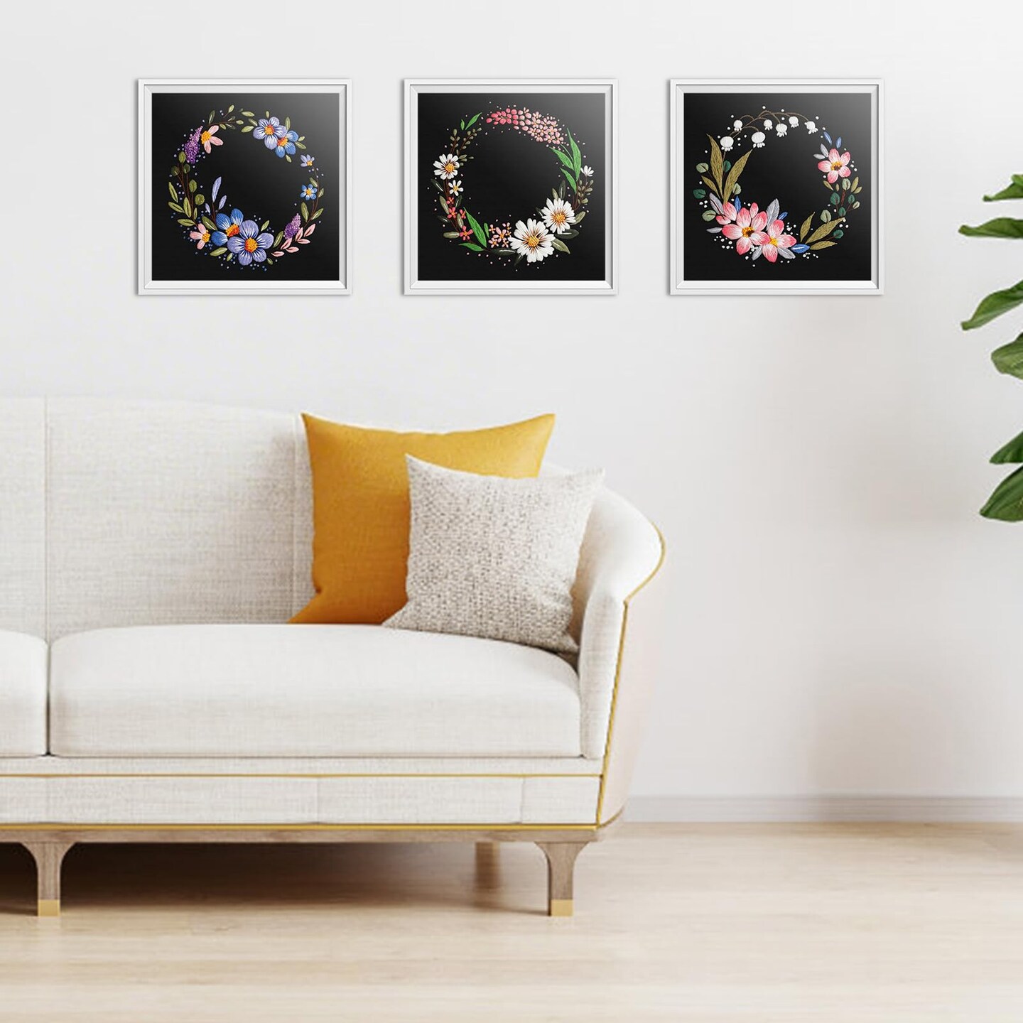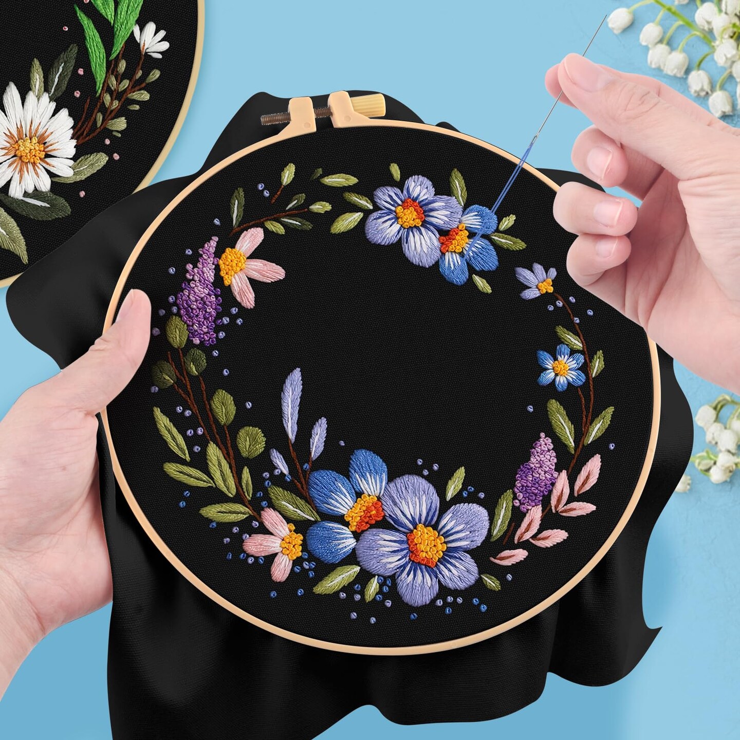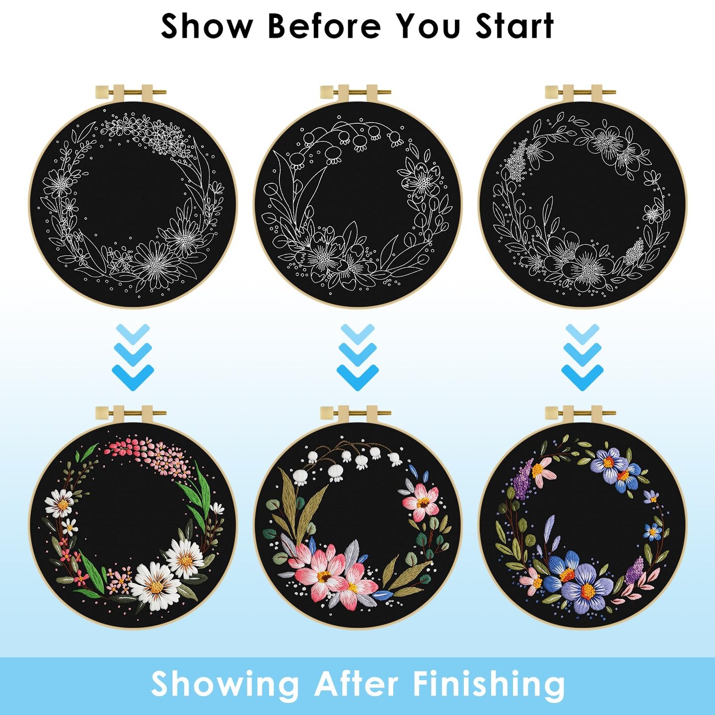 3 Sets Embroidery Kit, Floral Cross Stitch Set for Include Embroidery Cloth Hoops Threads for Craft Lover Hand Stitch (Garlands)