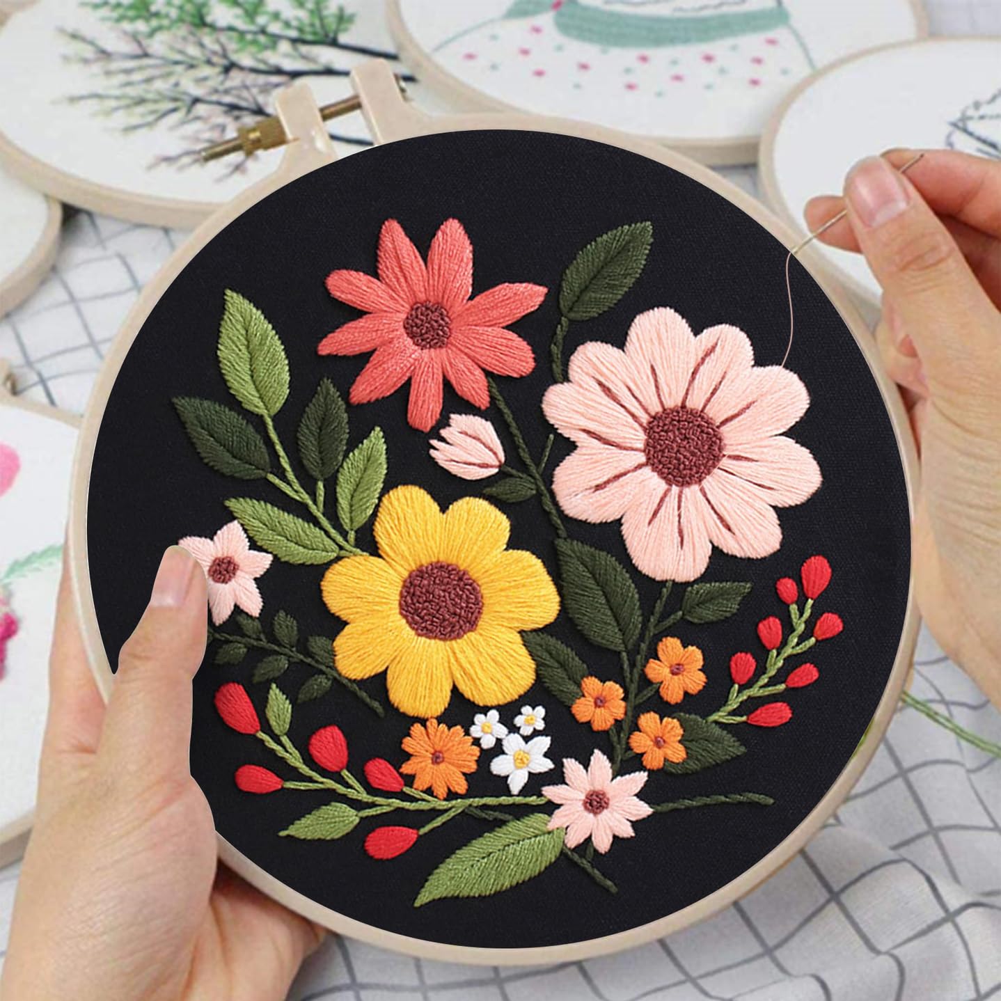 3 Sets Flowers Embroidery Kits for Beginners,Cross Stitch Kit for Adults,Crewel Starters Needlepoint with Floral Pattern,Hoop,Threads and Instruction