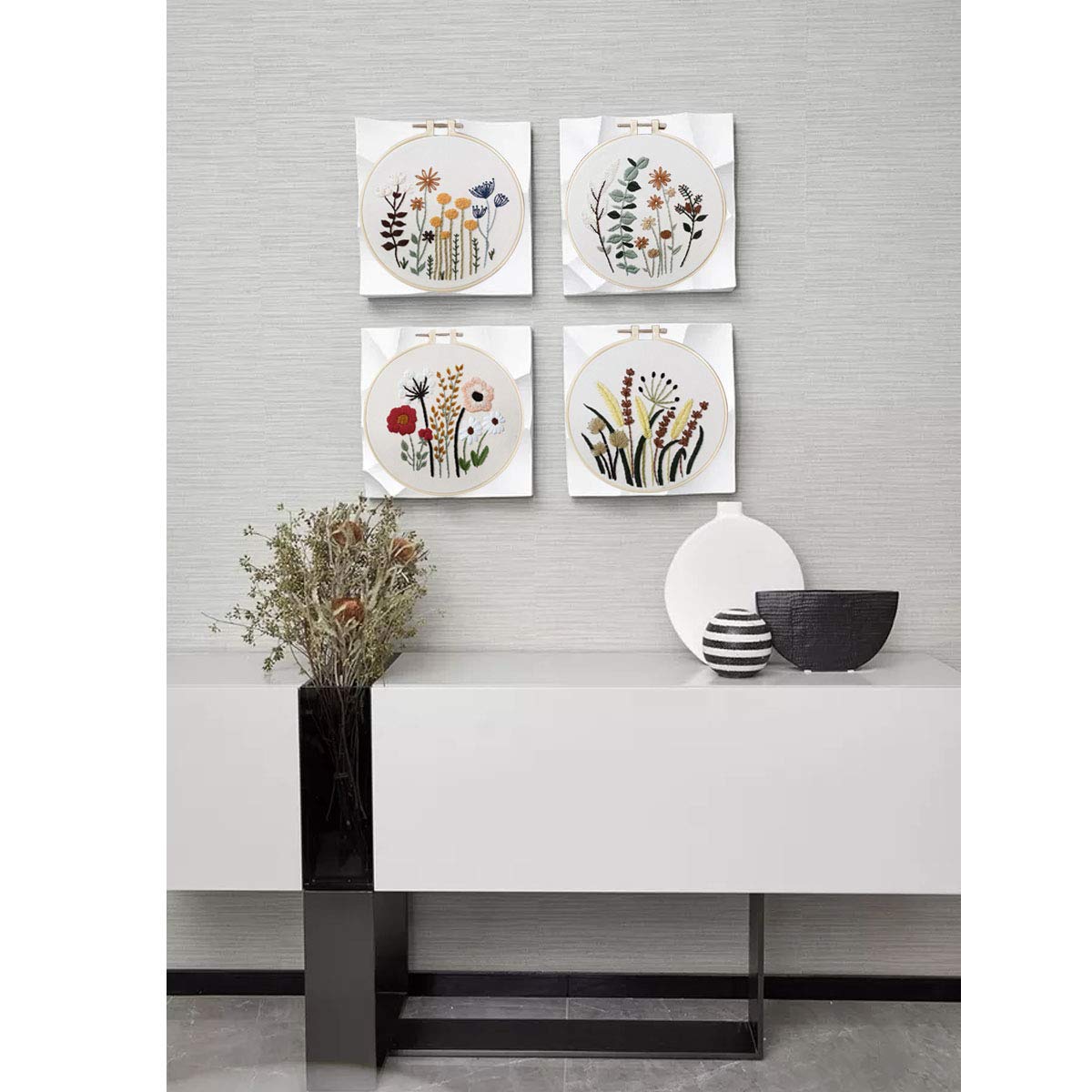 3 Sets of Beginner Embroidery Kits with 3 Patterns and 6 Needles, Needlepoint Kits for Adults,Including Embroidery Floss,3 Plastic Hoops and 3 Cotton Fabric