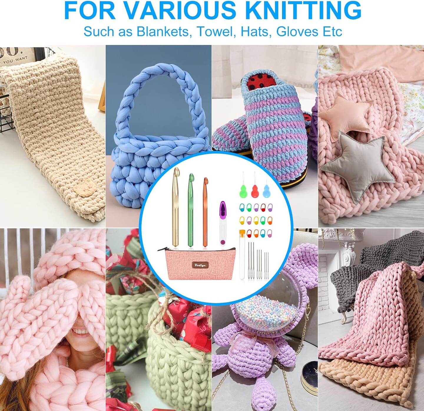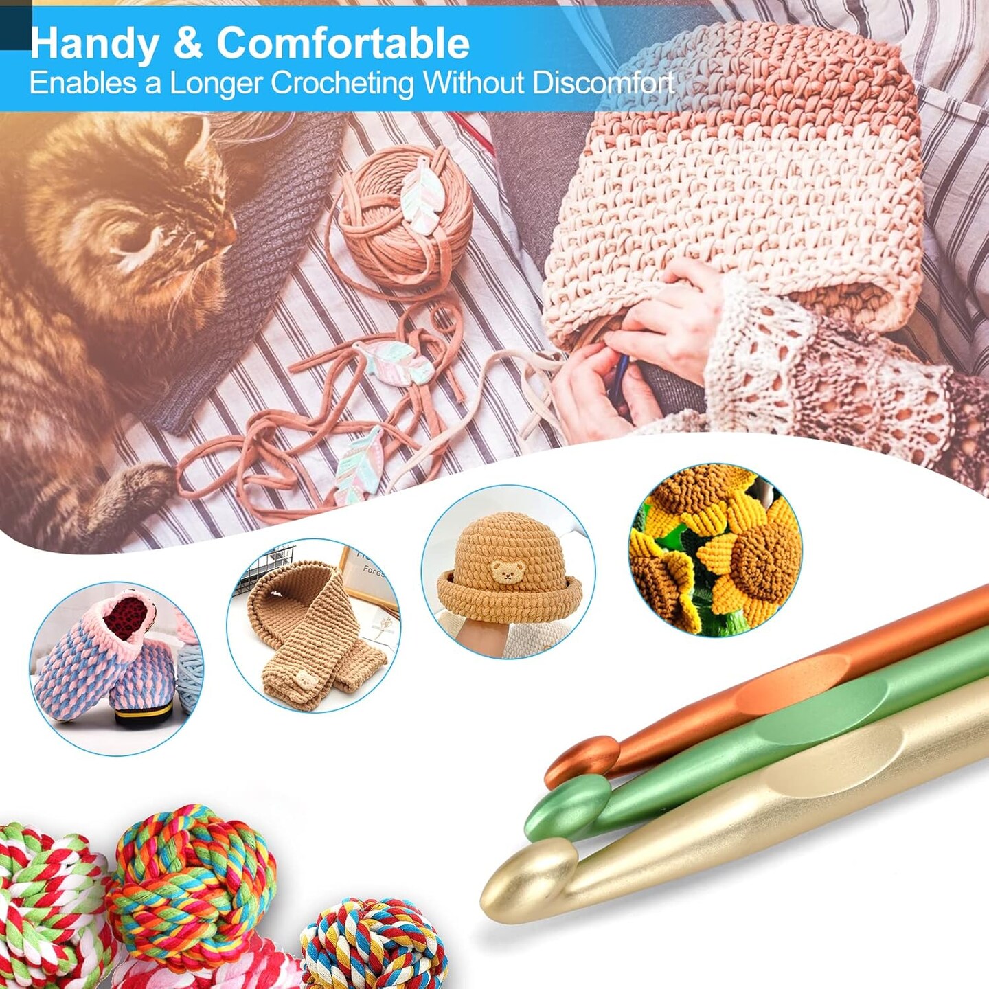 3 Sizes Large Crochet Hooks Set 10–15mm Ergonomic Metal Hooks