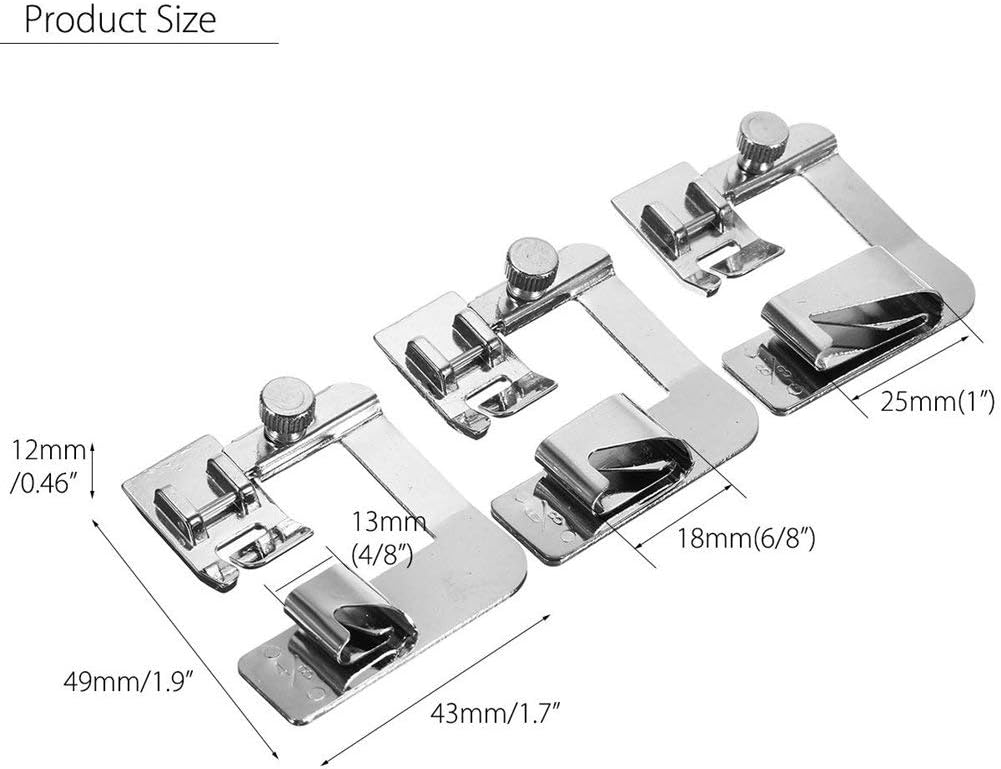 3 Sizes Wide Rolled Hem Pressure Foot Sewing Machine Presser Foot Hemmer Foot Set 1/2 Inch, 3/4 Inch, 1 Inch Compatible with for Brother Singer and Other Low Shank Sewing Machine