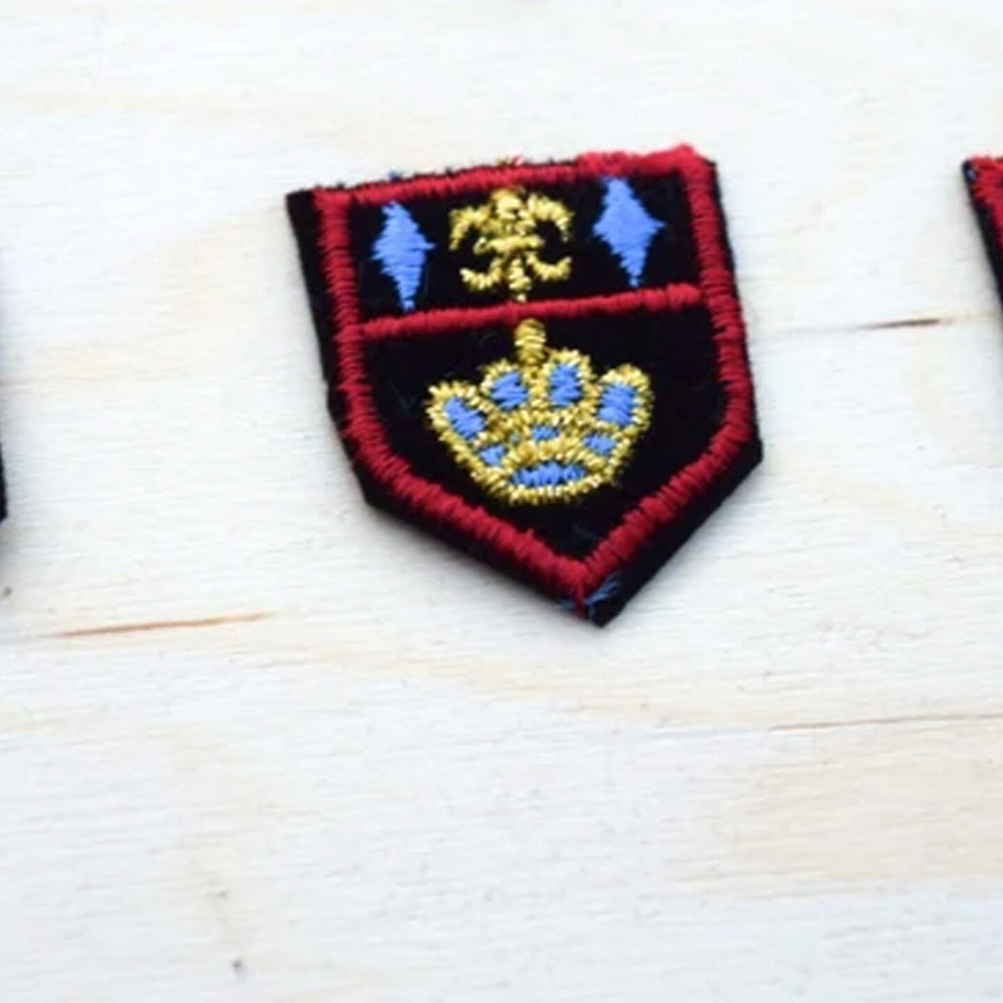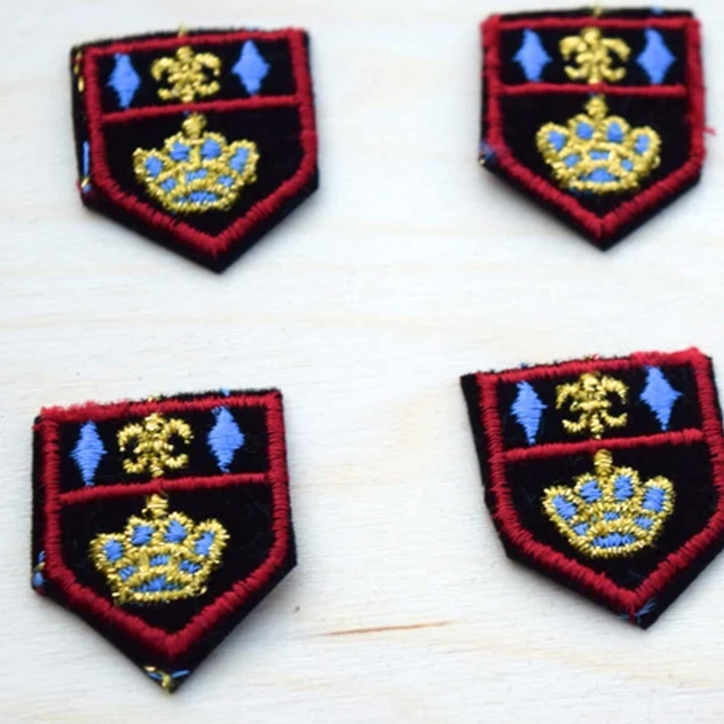 3 Small Embroidered Flor De Lis Crest Patches for Jackets Uniforms Iron On Velvet Backing